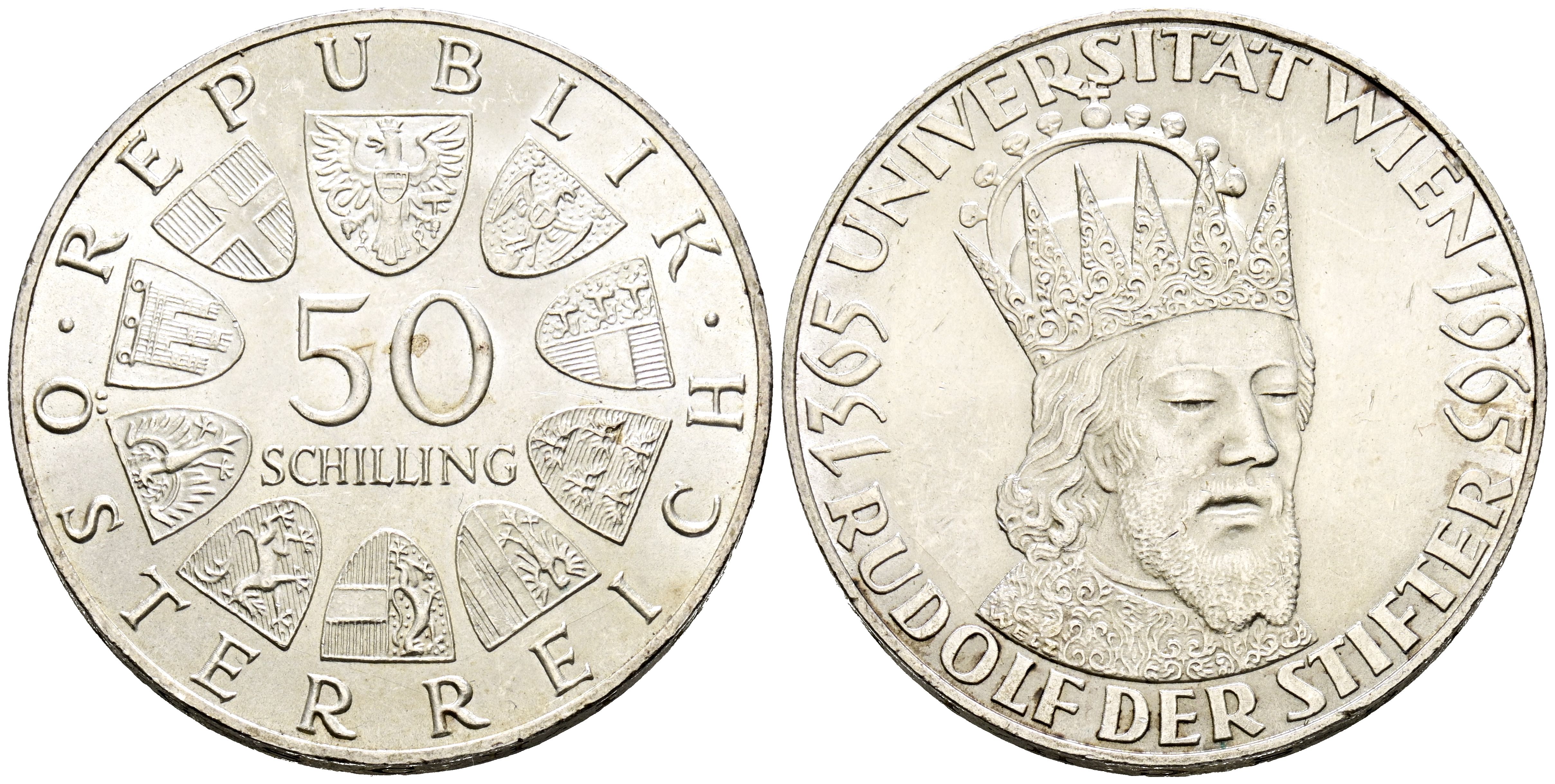 AUSTRIA. 50 Schilling (Ar. 20,08g/34mm). 1965. 600th Anniversary of the University of Vienna. (Km#2898). Uncirculated-.