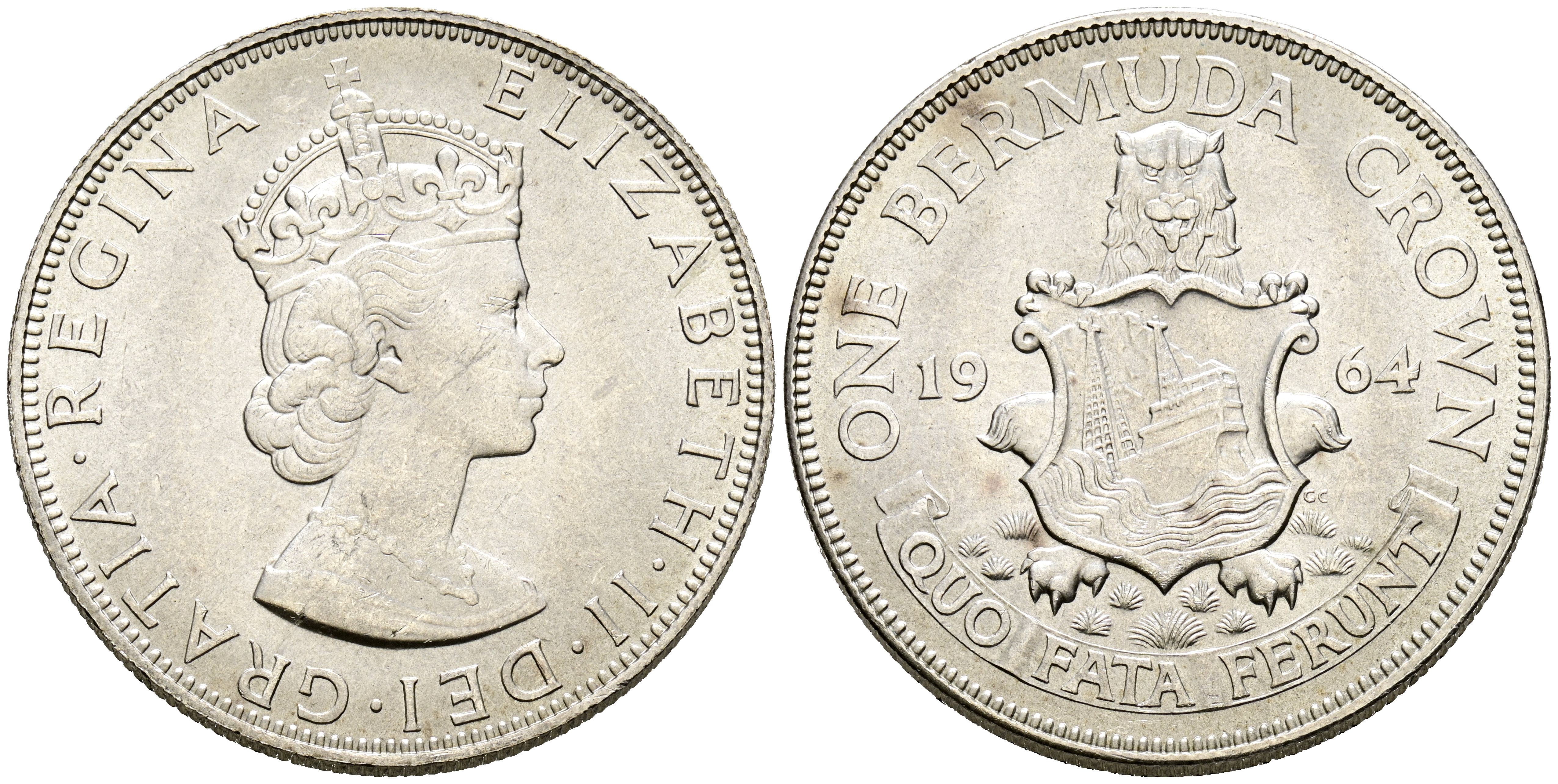 BERMUDA, Elizabeth II. 1 Crown. (Ar. 22.69g/36mm). 1964. (Km#14). Good Extremely Fine.