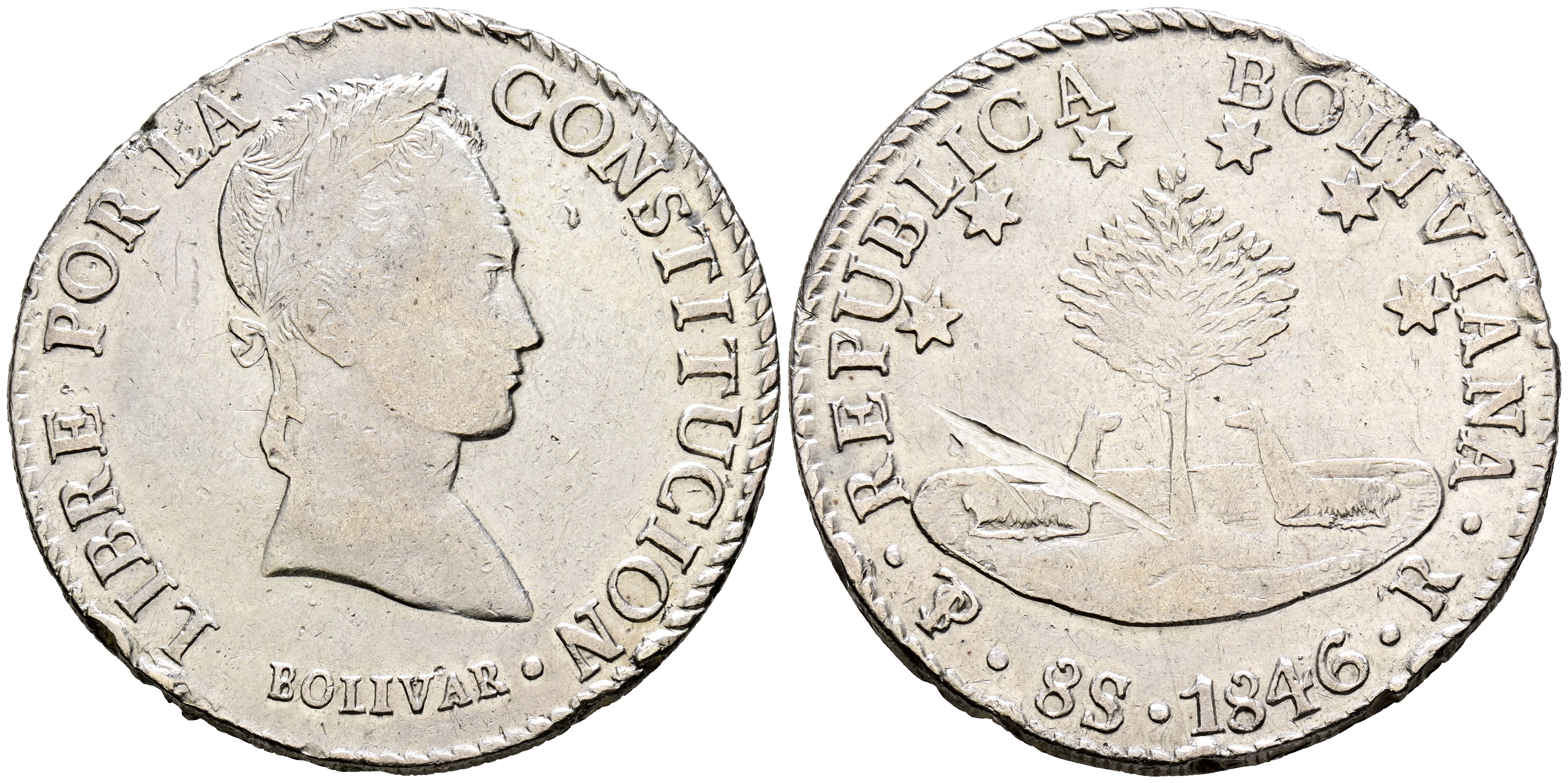 BOLIVIA. 8 Soles (Ar. 26.36g/38mm). 1846. Potosí R. (Km#103). Very Fine.