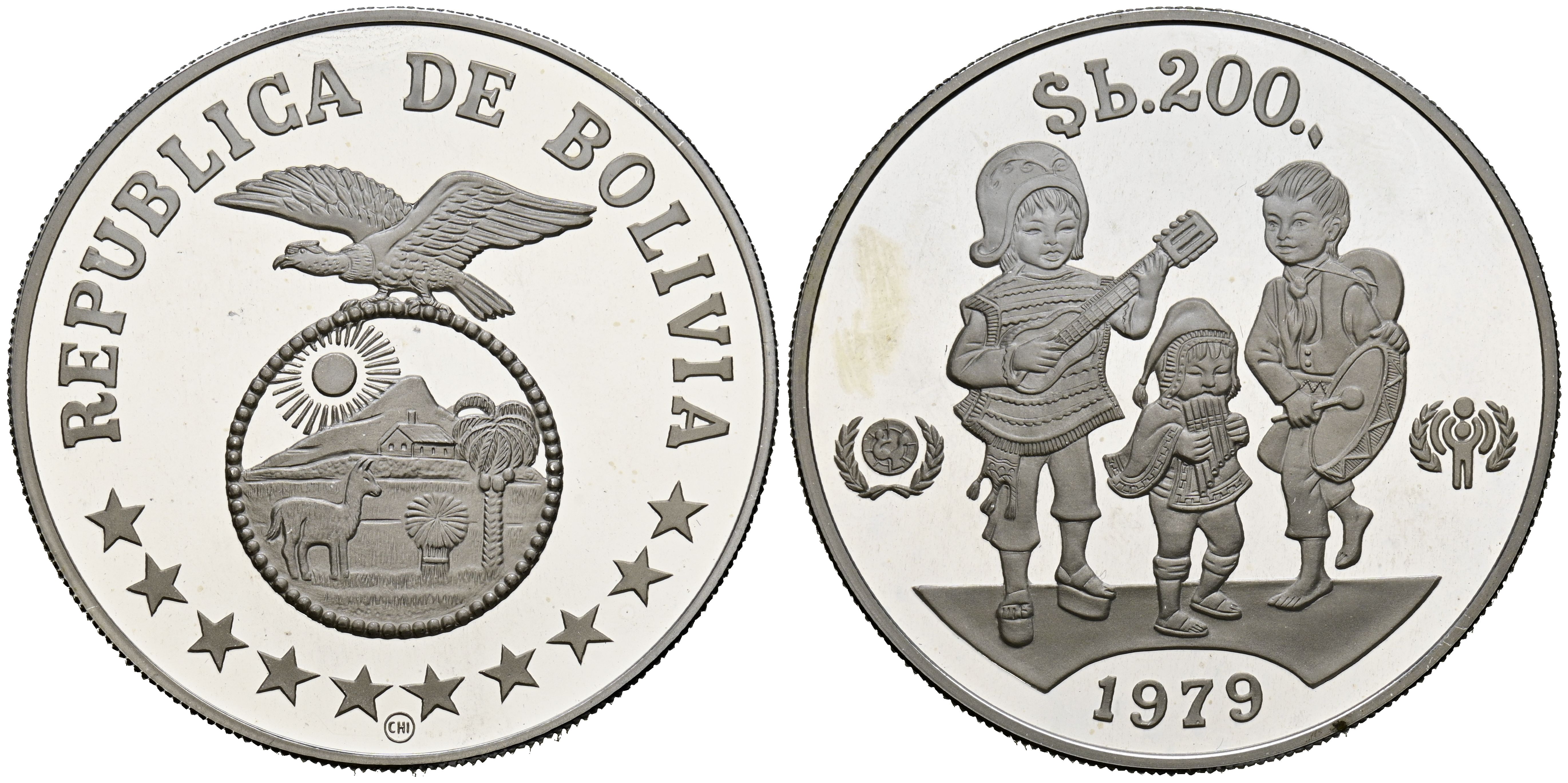 BOLIVIA. 200 Pesos (Ar. 23.24g/39mm). 1979. International Year of the Child. (Km#198). PROOF.