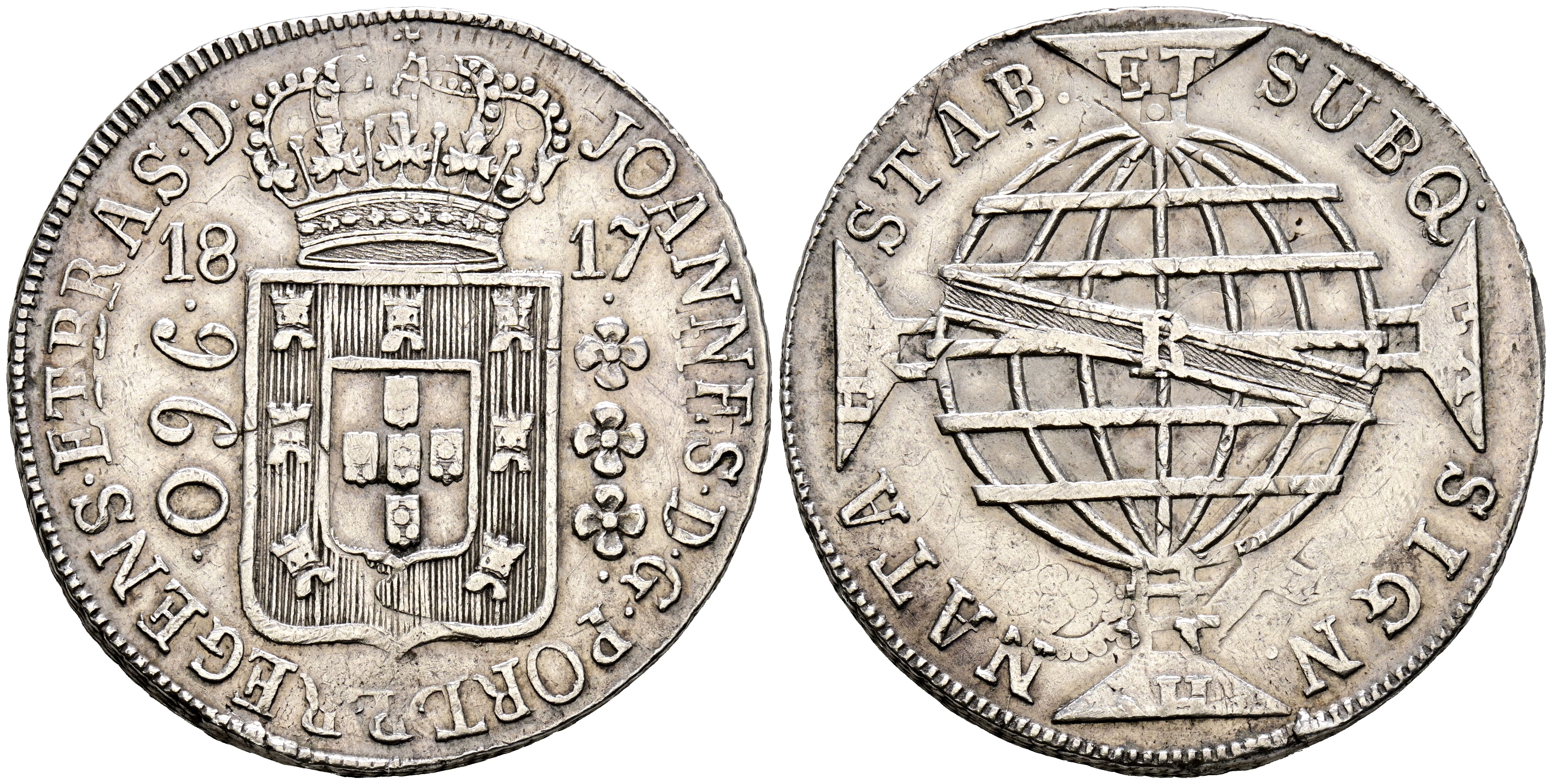 BRAZIL. 960 Reis. (Ar.26,70g/40mm). 1817. Joao VI. Rio de Janeiro R. Minted on a piece of 8 Spanish reales. (Km#307.3). VF+.