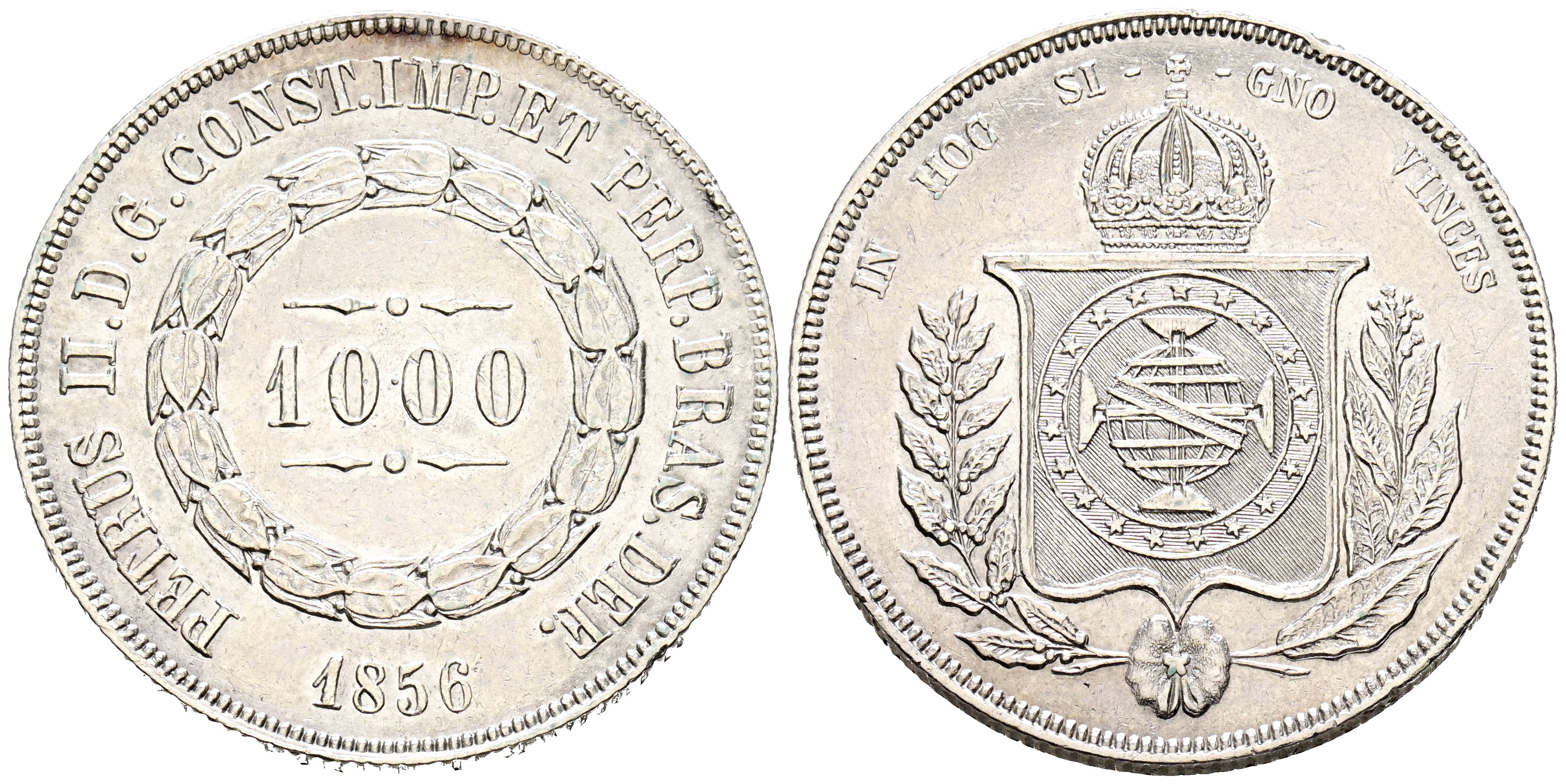 BRAZIL, Pedro II. 1000 Reis. (Ar. 12.70g/30mm). 1856. (Km#465). Very Fine.