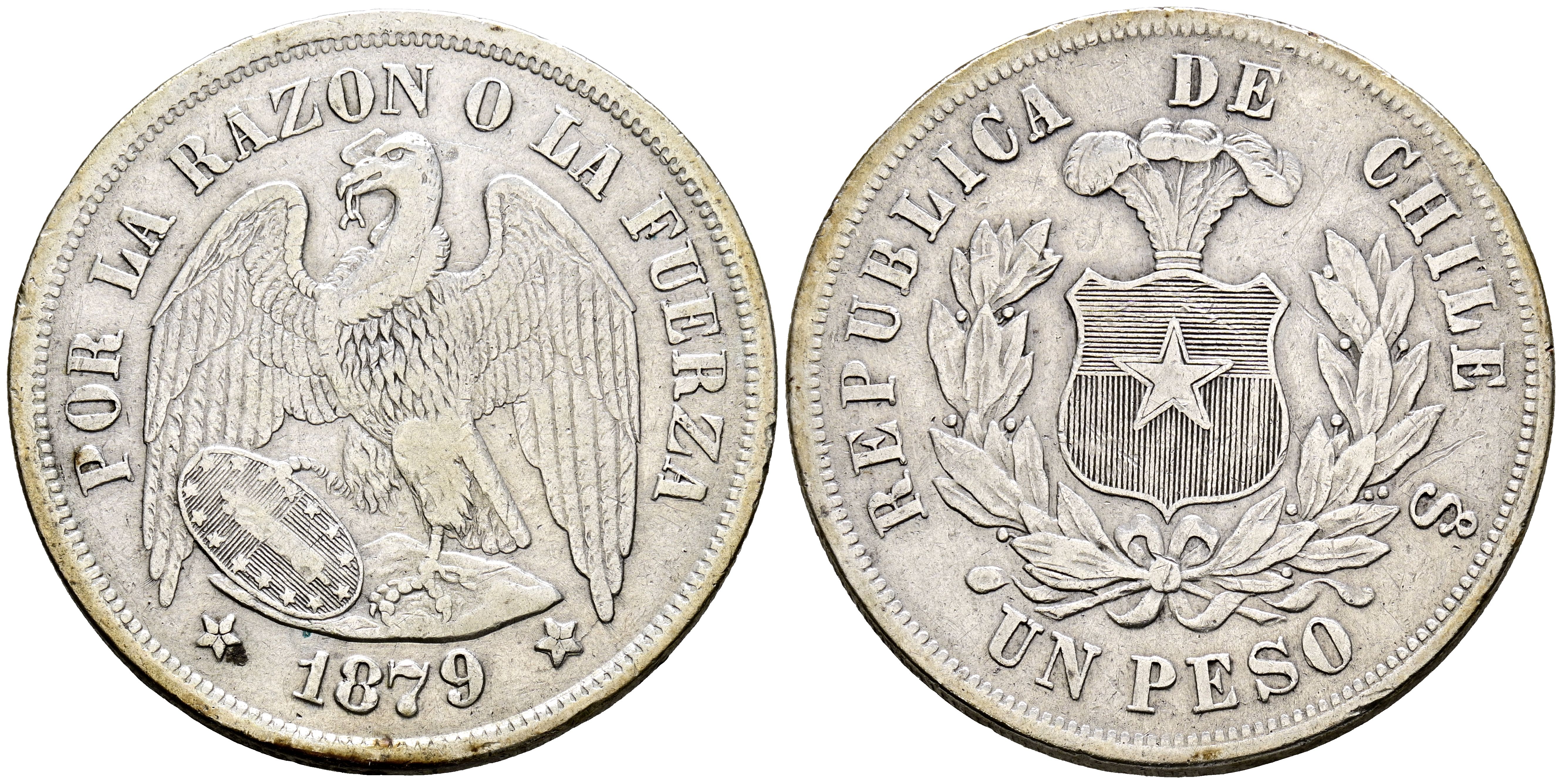 CHILI. 1 Weight (Ar. 24.49g/38mm). 1879. Santiago. (Km#142.1). Very Fine.