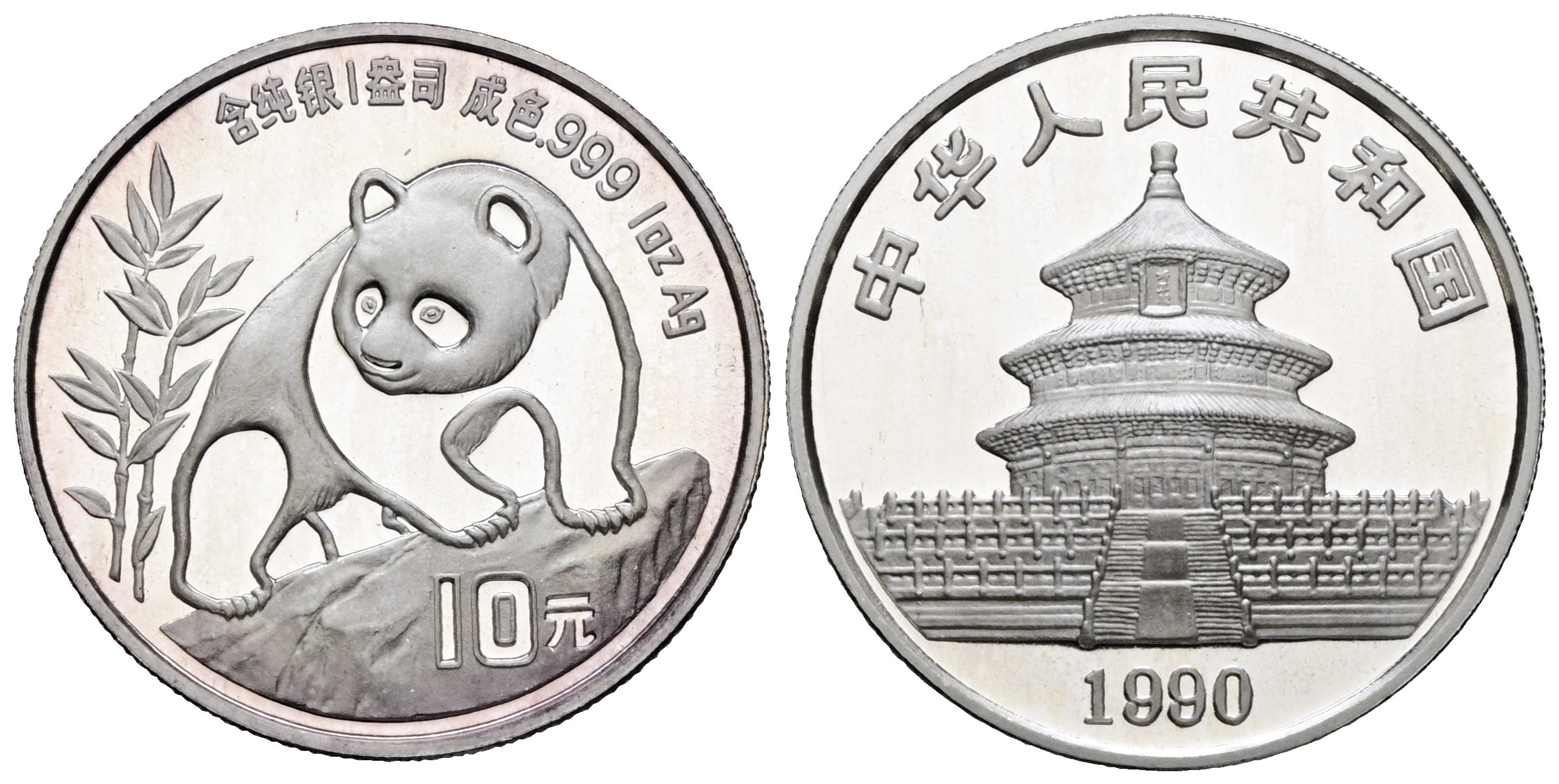 CHINA. 10 Yuan. (Ar. 31.10g/40mm)*. 1990. Panda series. (Km#276). PROOF. In original unopened blister. * Theoretical weight and measurements.