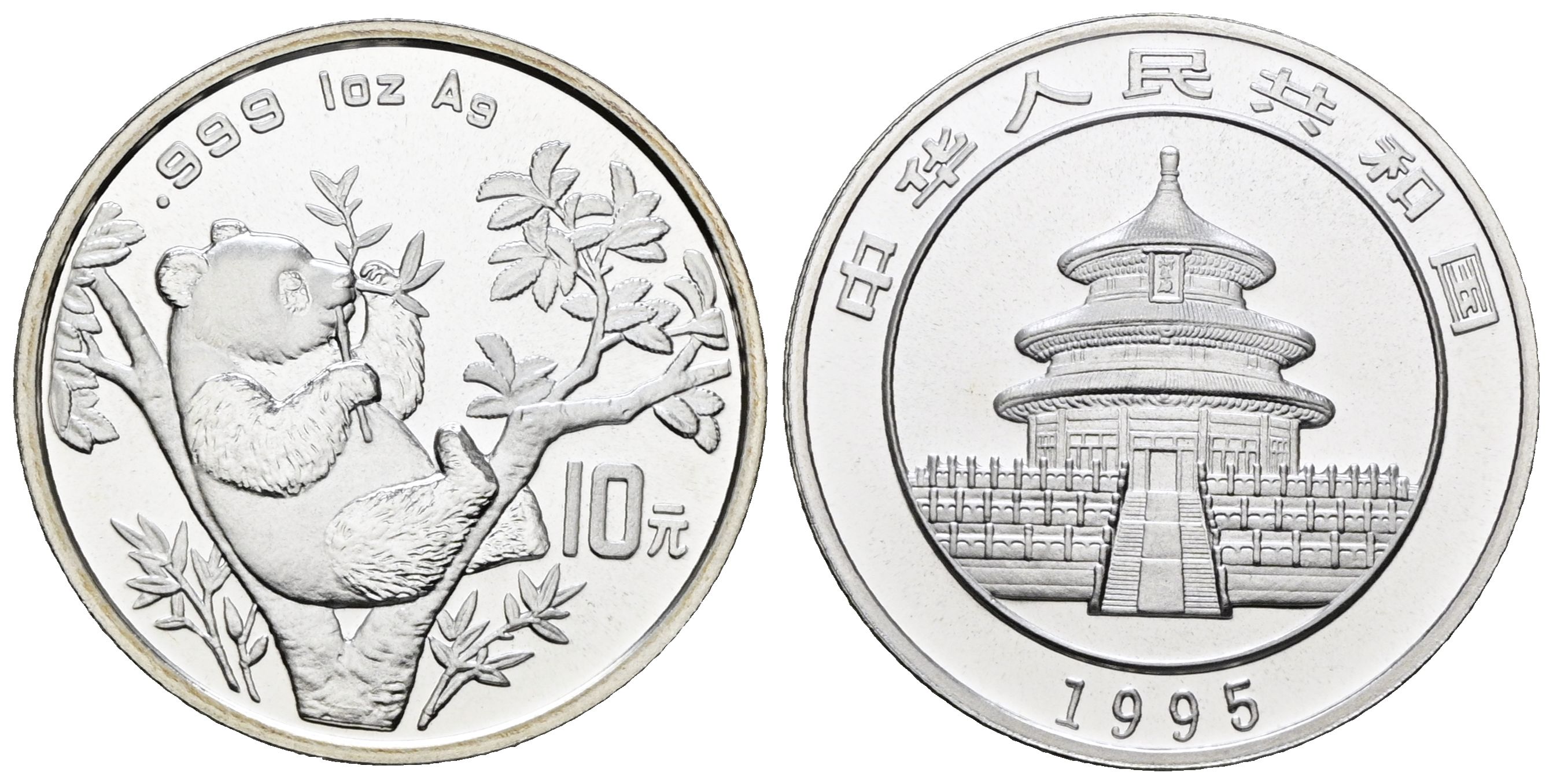CHINA. 10 Yuan. (Ar. 31,25g/40mm). 1995. Panda series. (Km#732.1). Brilliant uncirculated. Includes capsule.