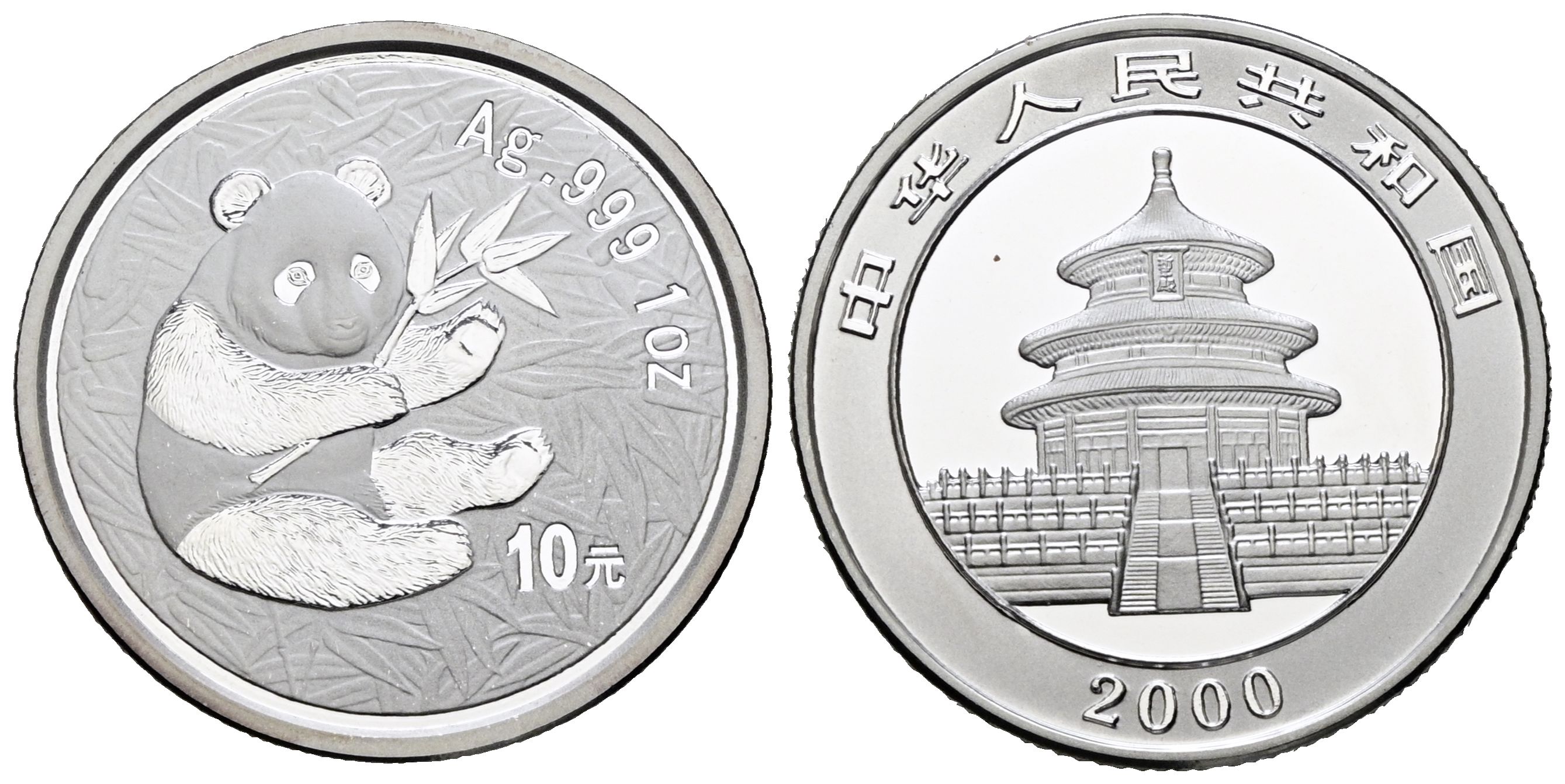 CHINA. 10 Yuan. (Ar. 31.10g/40mm). 2000. Panda Series. PROOF. Presented in original sealed blister with capsule.