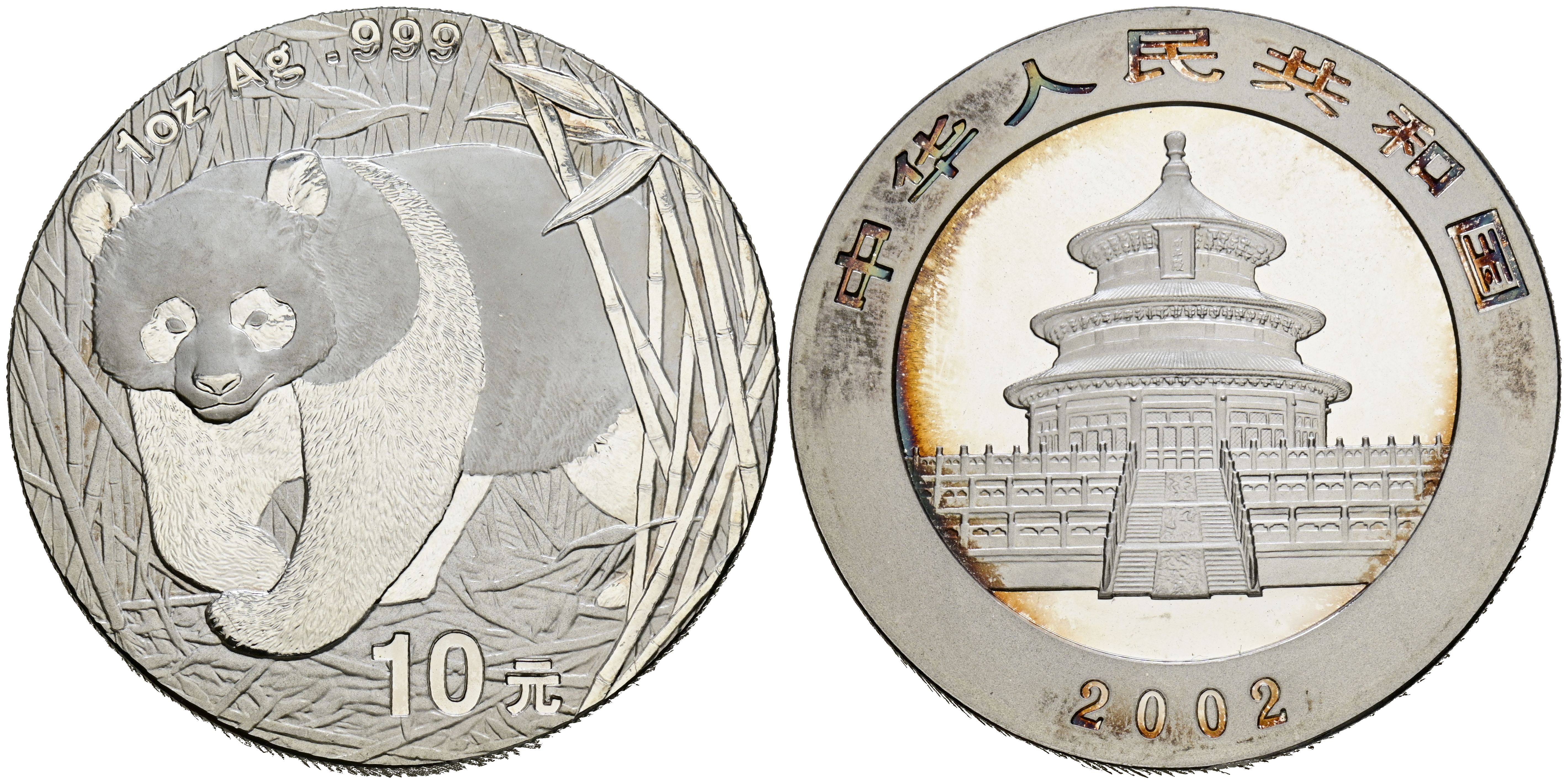 CHINA. 10 Yuan (Ar. 31.28g/40mm). 2002. Panda Series. (Km#1365). PROOF.