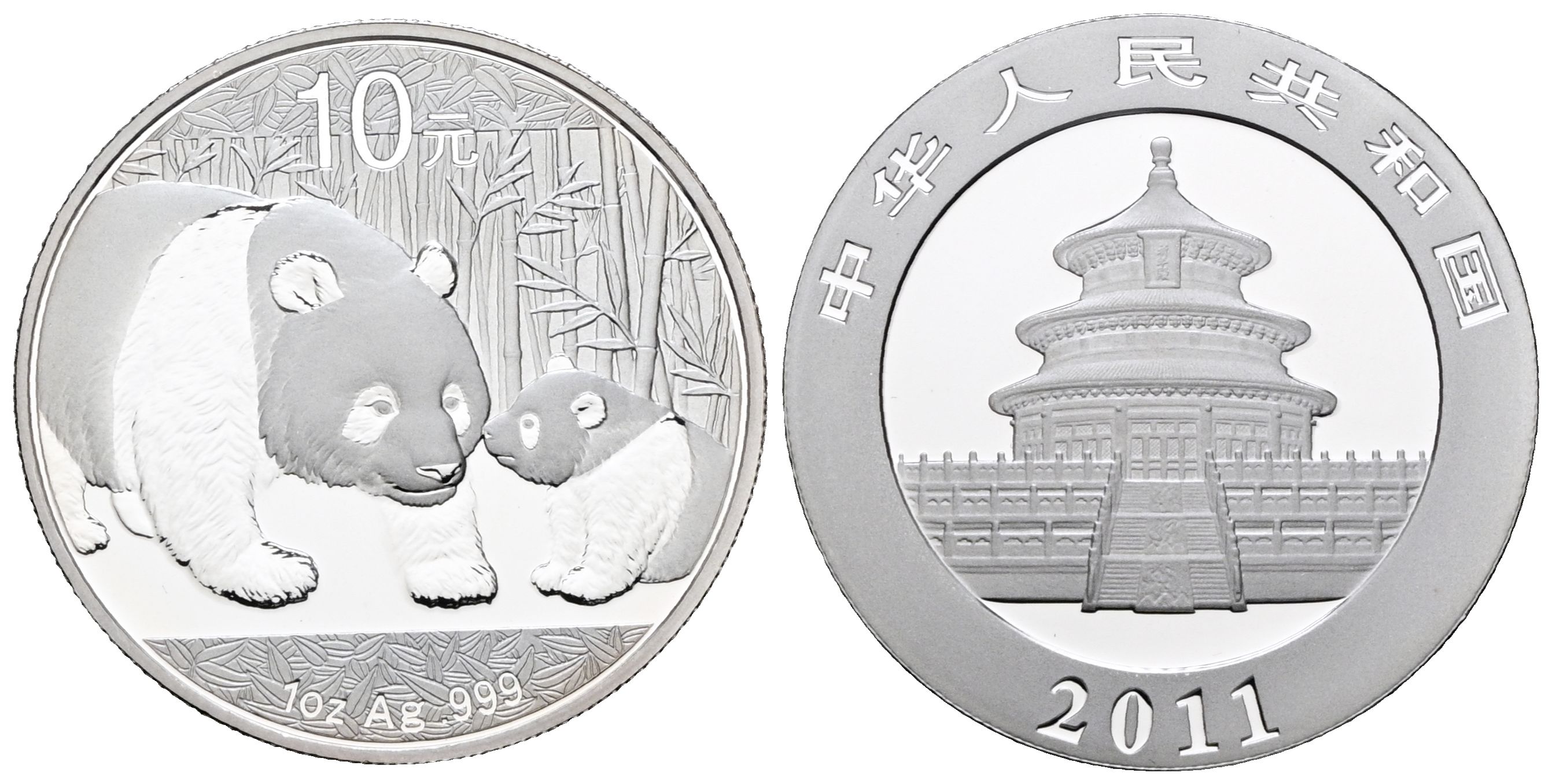 CHINA. 10 Yuan. (Ar. 31.19g/40mm). 2010. Panda Series. PROOF. Includes capsule.