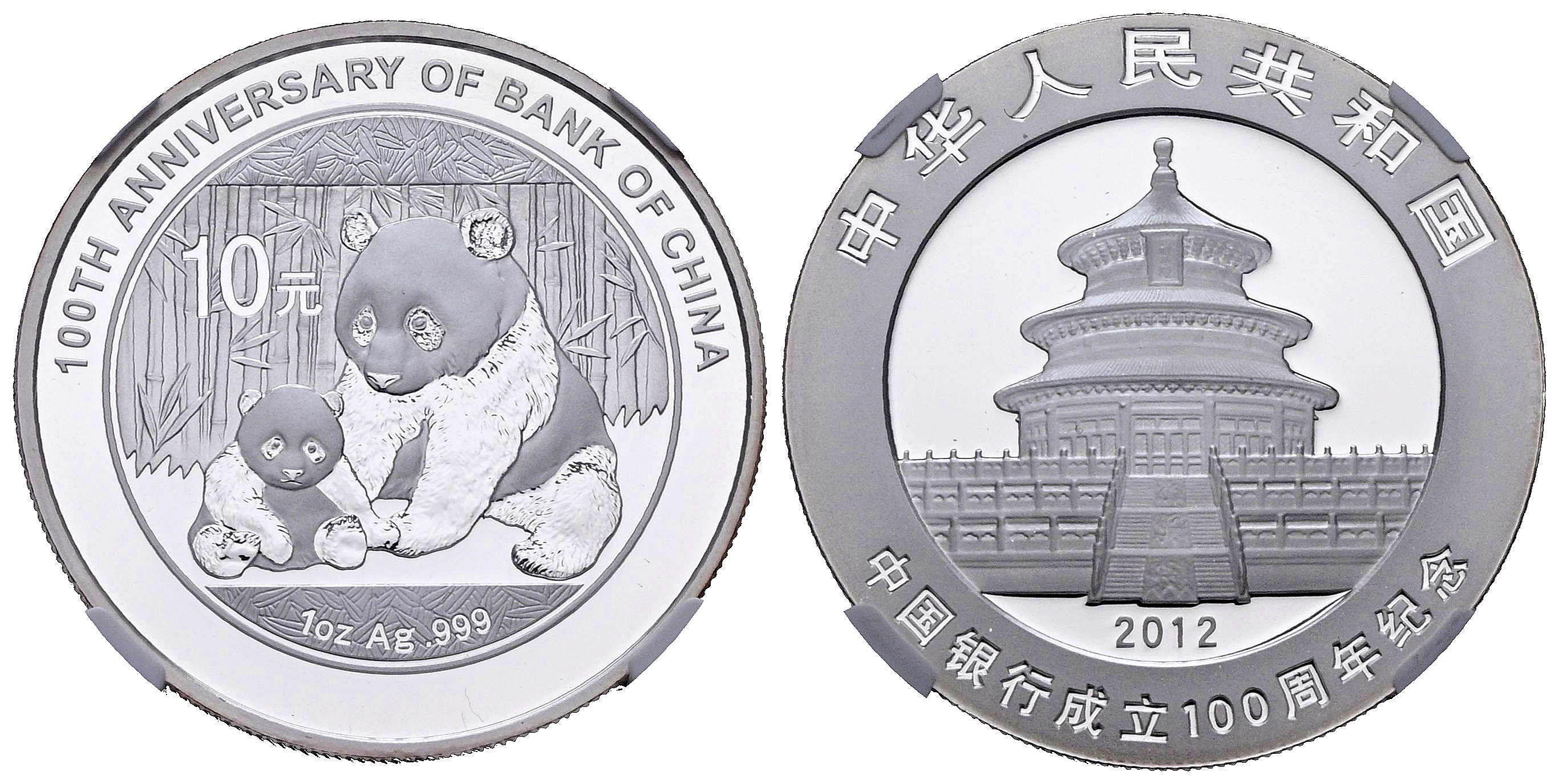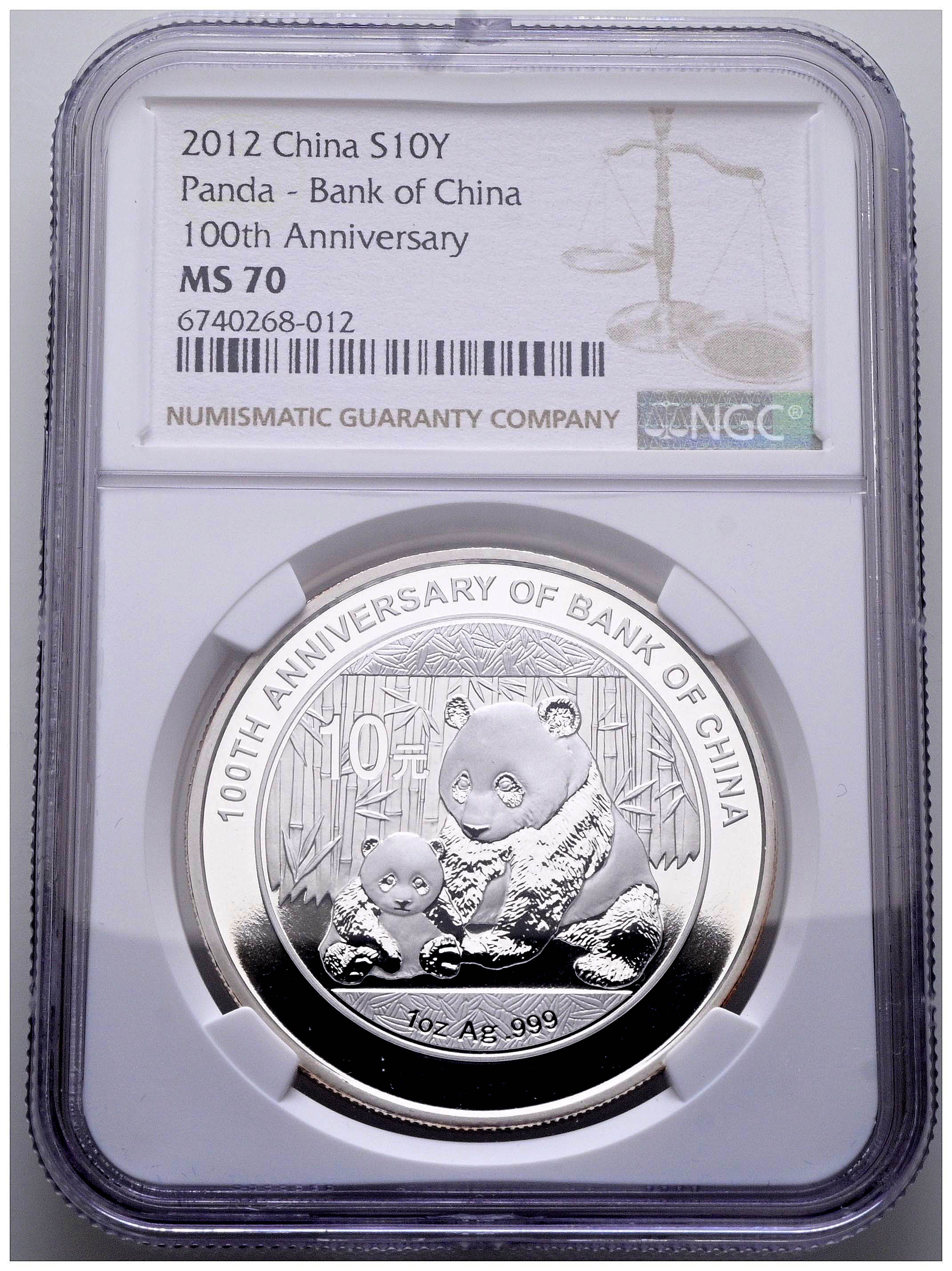 CHINA. 10 Yuan. (Ar. 30.00g/40mm)*. 2012. Panda Series. 100th Anniversary of the Bank of China. Encapsulated by NGC MS 70. Includes certificate of authenticity. *Theoretical weight and measurements.