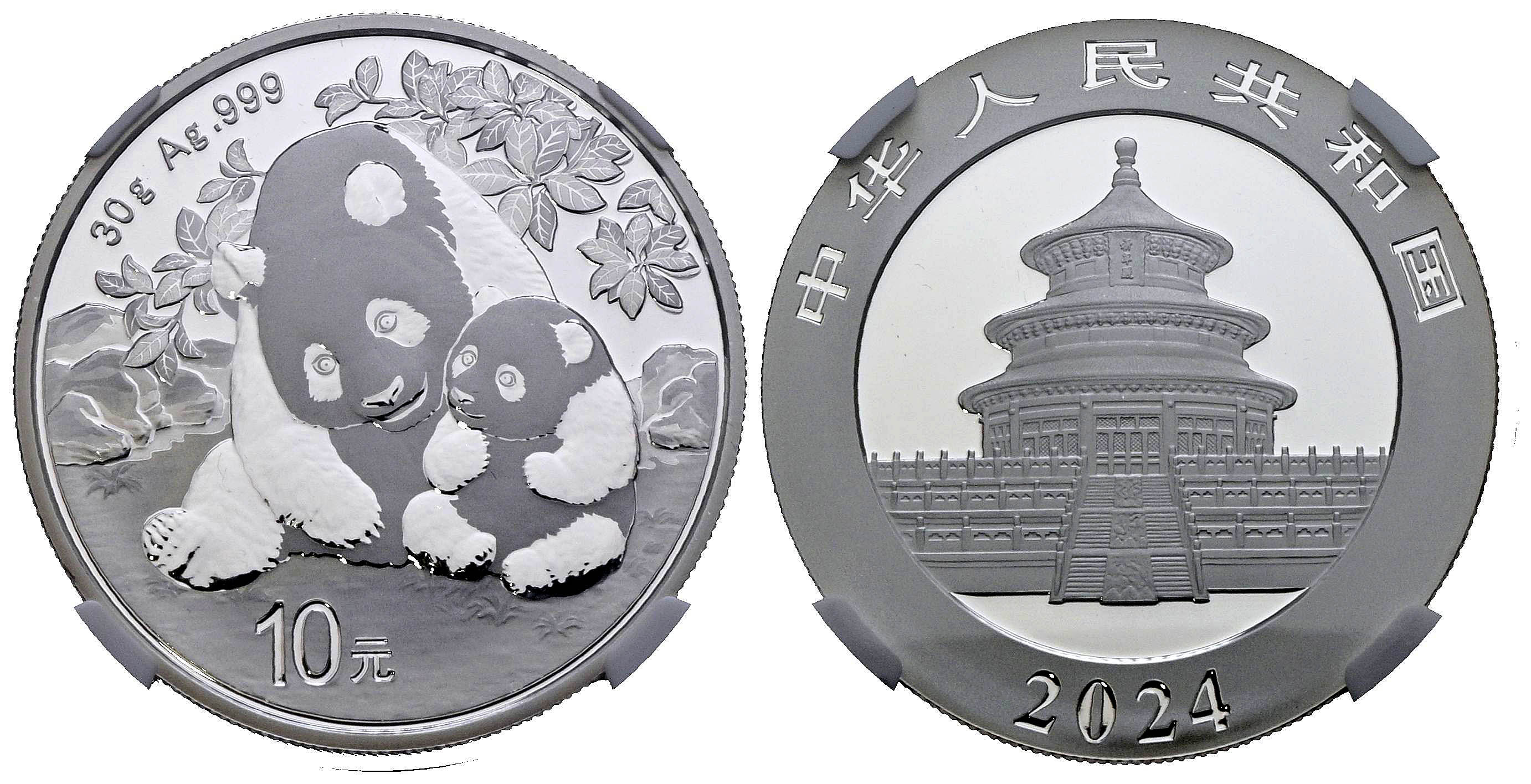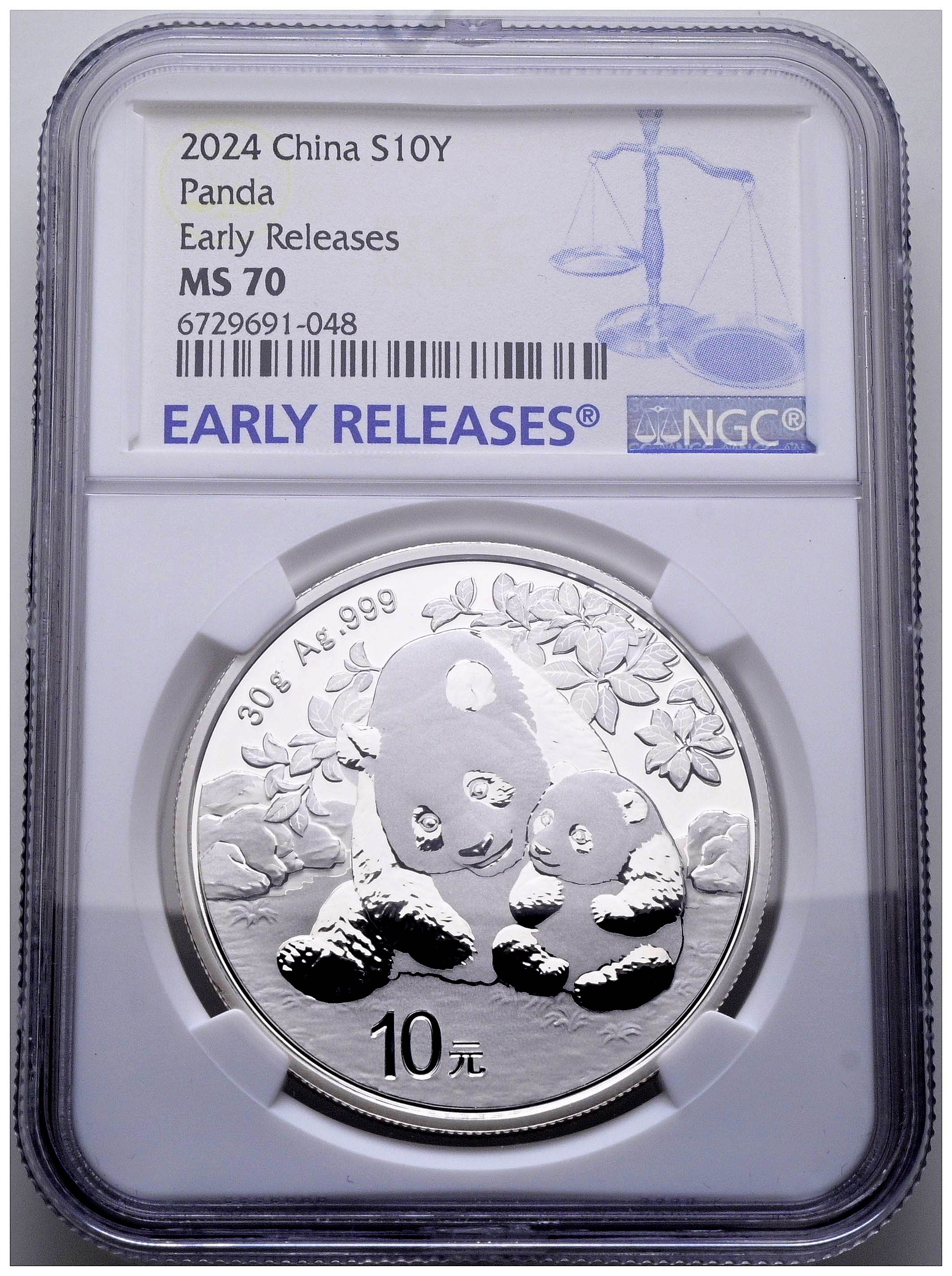 CHINA. 10 Yuan. (Ar. 30.00g/40mm)*. 2024. Panda Series. Encapsulated by NGC MS 70, Early Releases. *Theoretical weight and measurements.