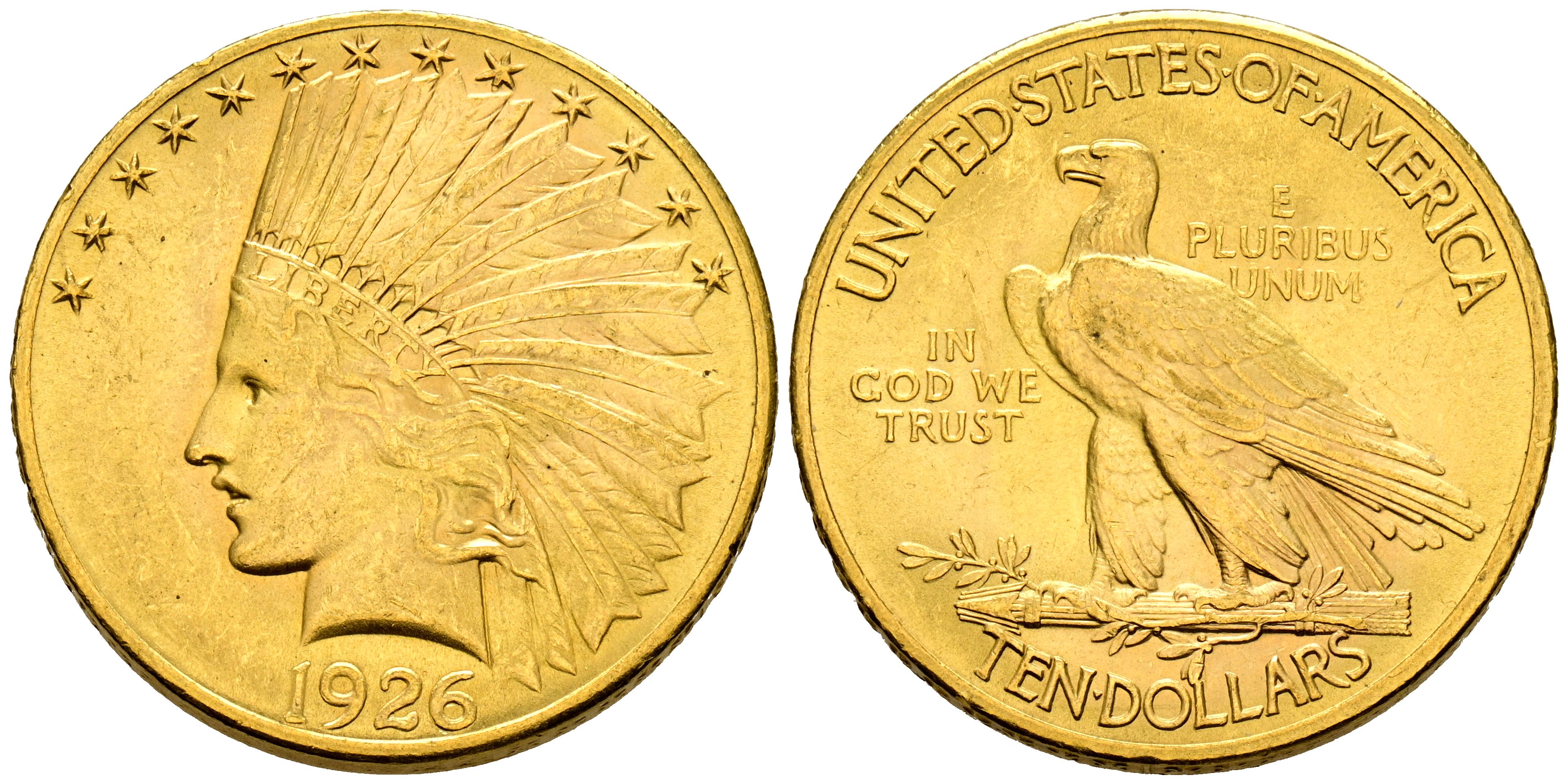 USA. 10 Dollars. (Au. 16.73g/27mm). 1926. Philadelphia. Indian Head type. (Km#130). Good Extremely Fine.