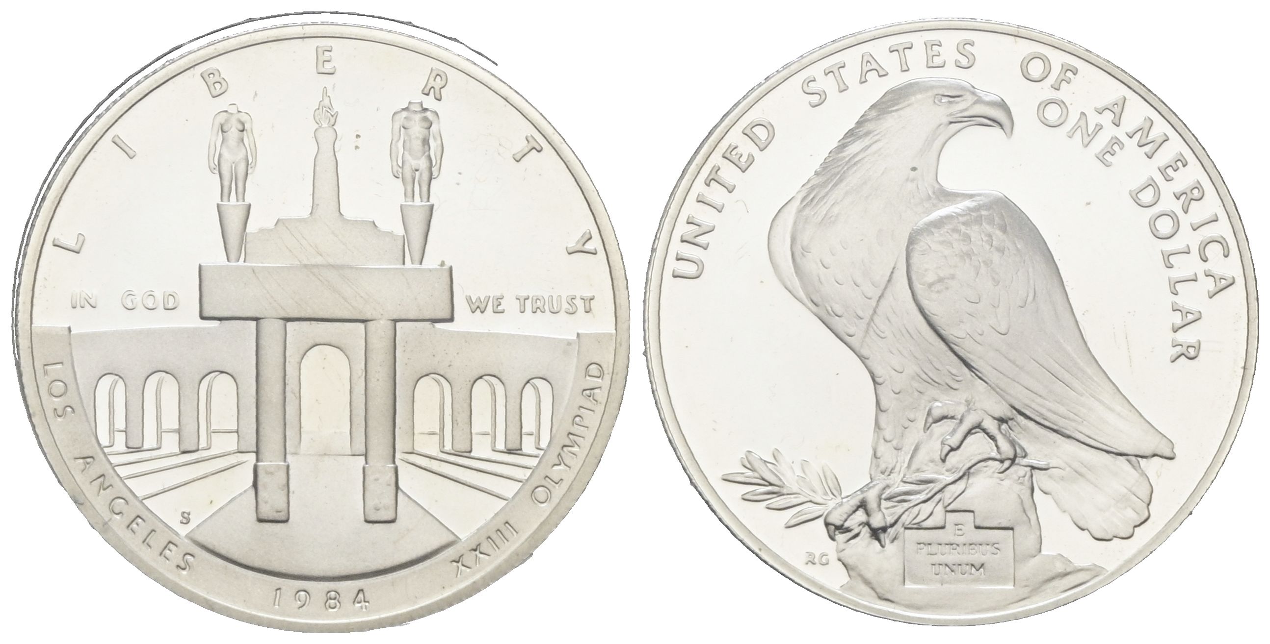 UNITED STATES. 1 Dollar. (Ar. 26,73g/38mm). 1984. San Francisco S. Los Angeles Olympics. (Km#210). PROOF. Includes capsule.