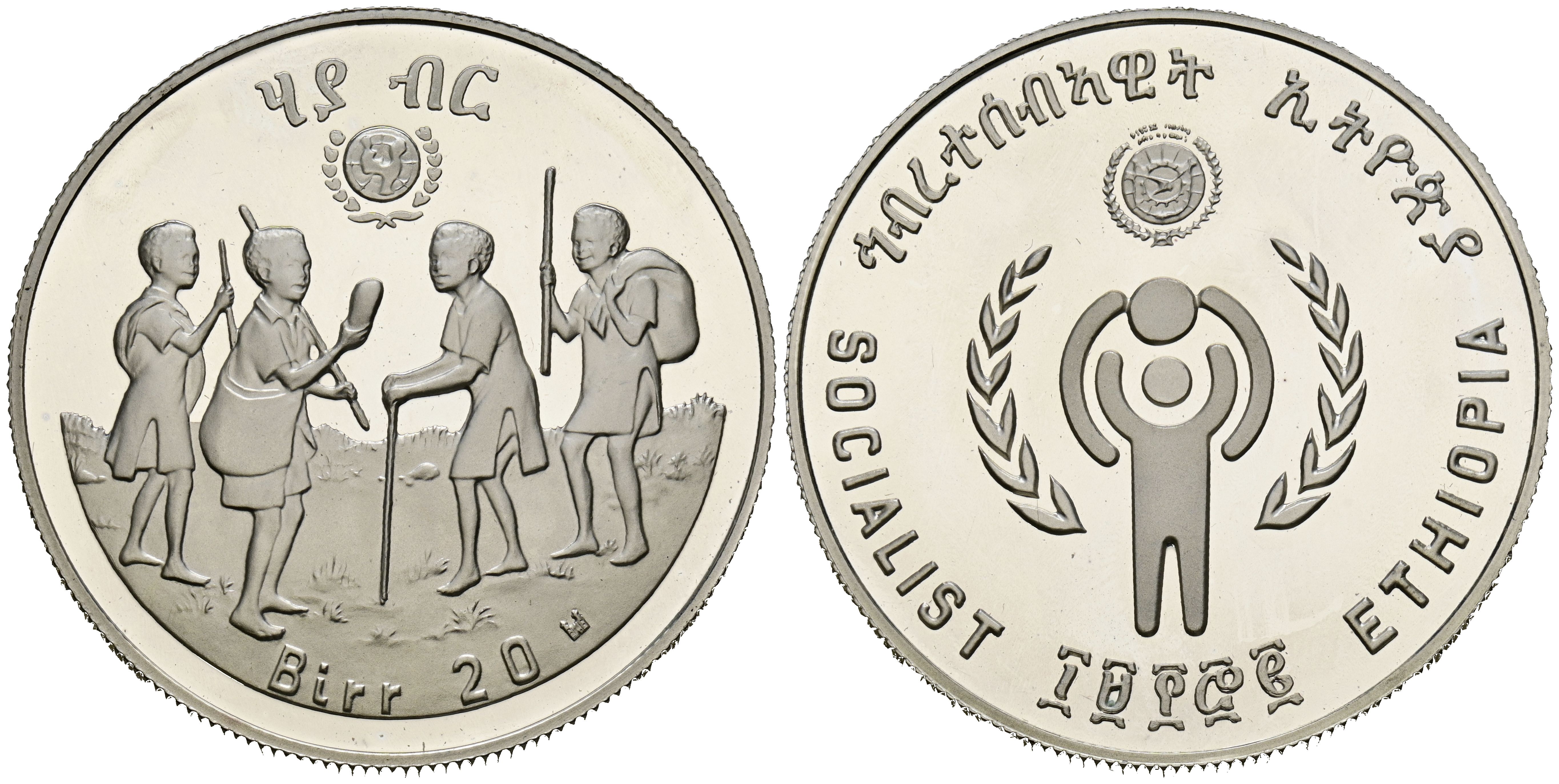 ETHIOPIA, 20 Birr. (Ar. 23.29g/39mm). 1980. International Year of the Child. (Km#54). PROOF. Scarce.