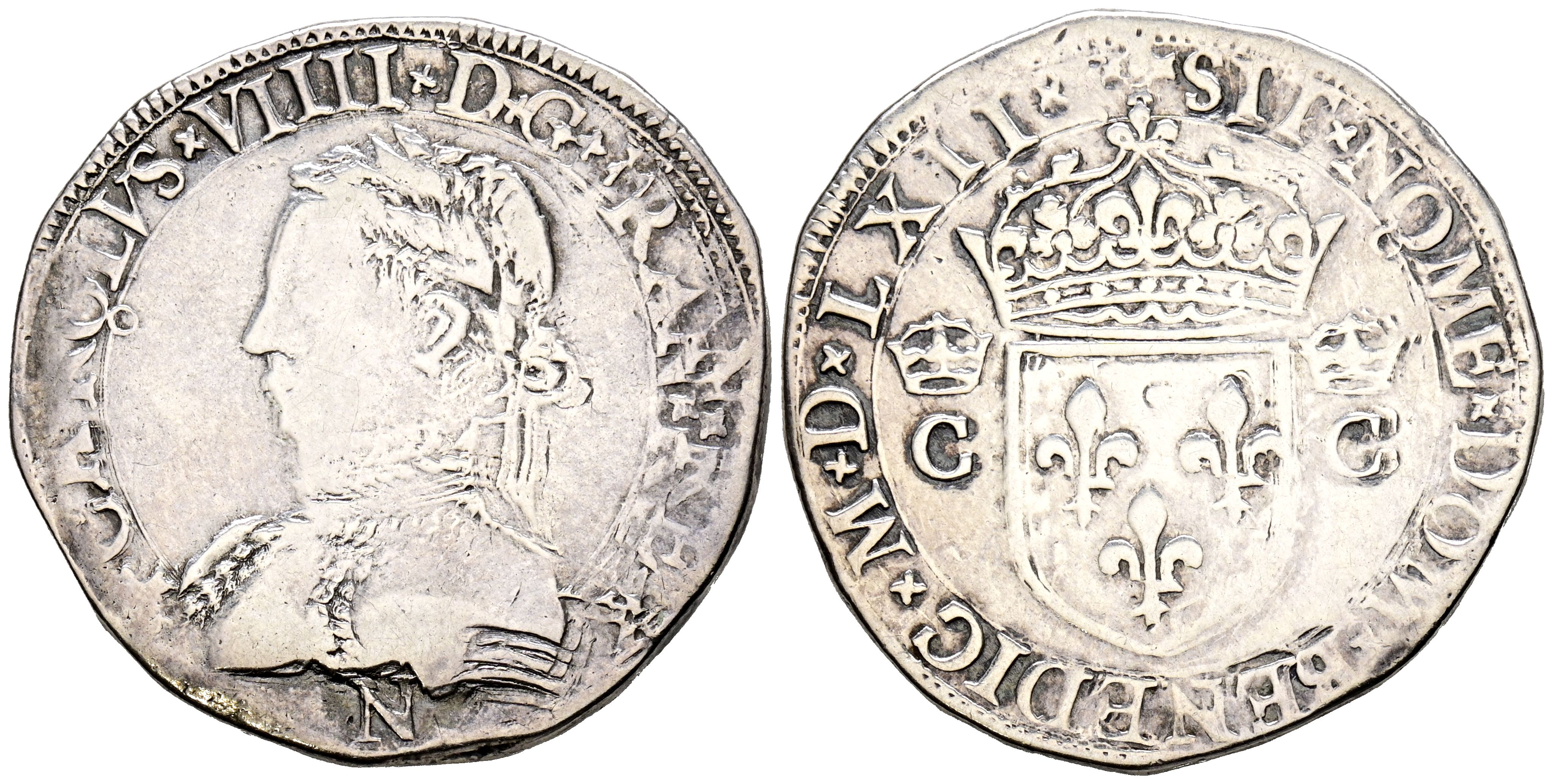 FRANCE. Teston (Ar. 9.30g/29mm). 1562. Carolus VIIII. 1562 CC. Montpellier N. (Duplessy 1063). Very Fine. Cleaned.