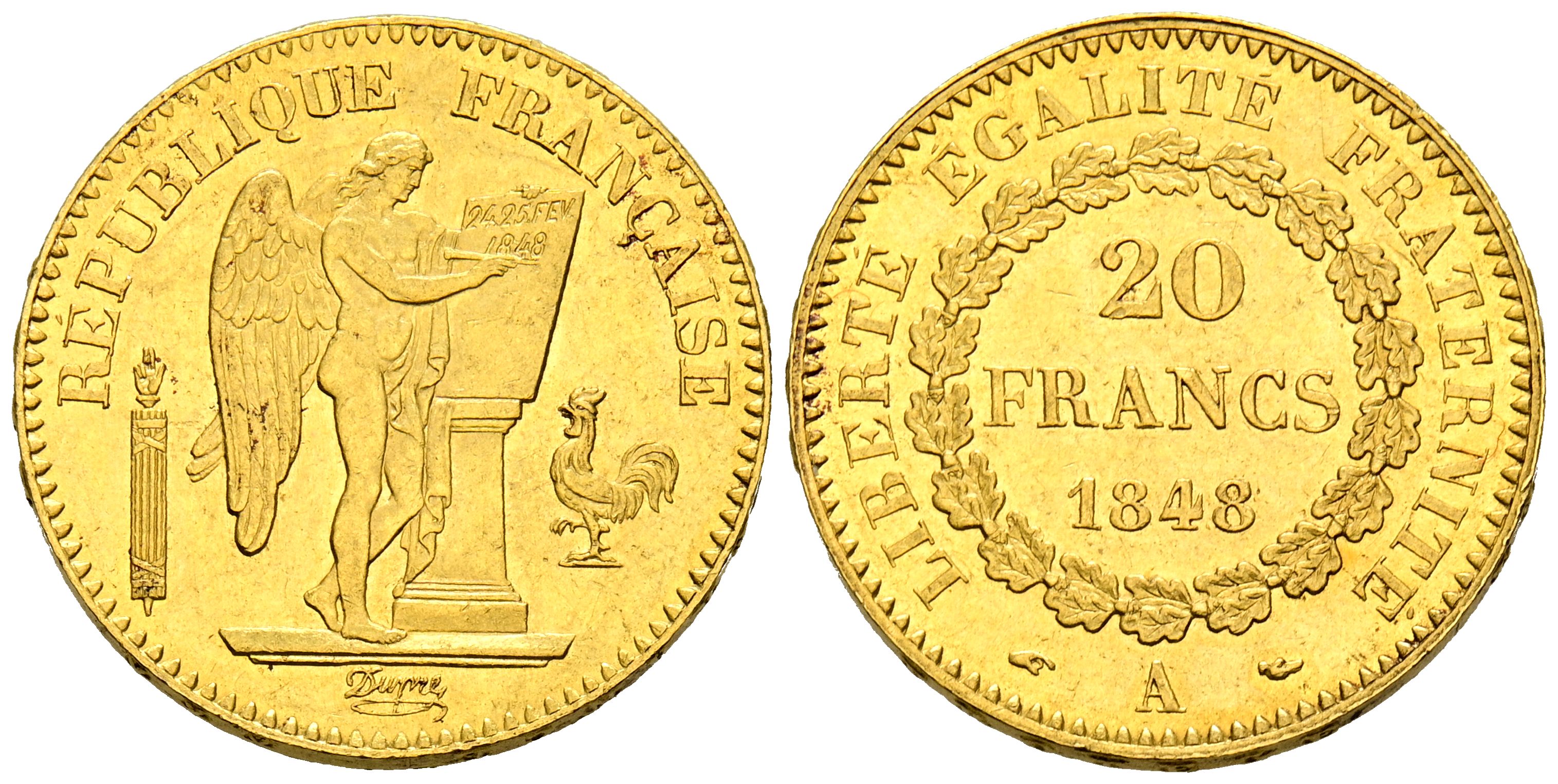 FRANCE, Second Republic (1848-1852). 20 Francs. (Au. 6.46g/21mm). 1848. Paris A. (Km#757). Good Very Fine.