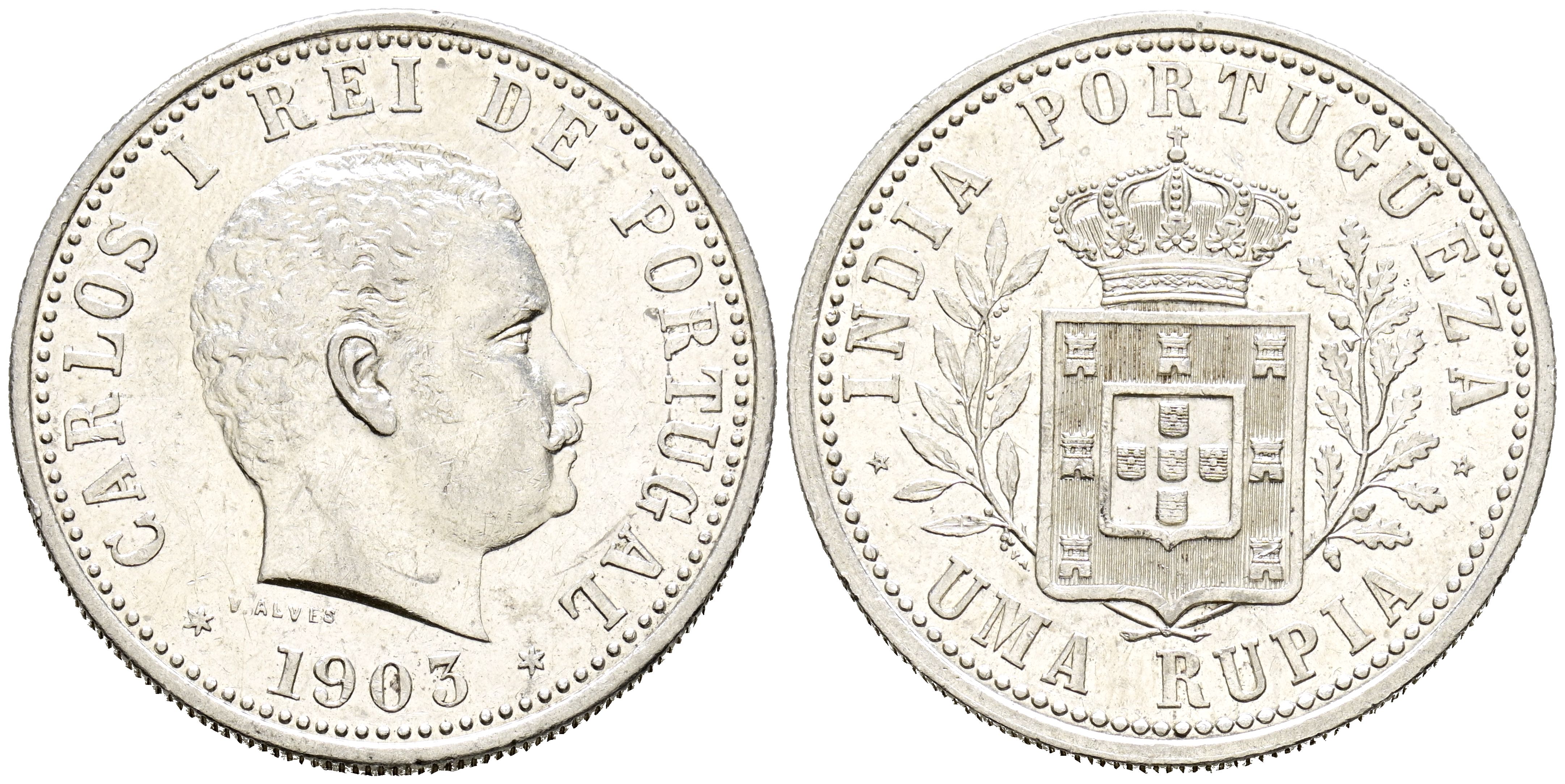 INDIA (Portuguese), Carlos I. 1 Rupee (Ar. 11.69g/30mm). 1903. (Km#17). Good Very Fine.