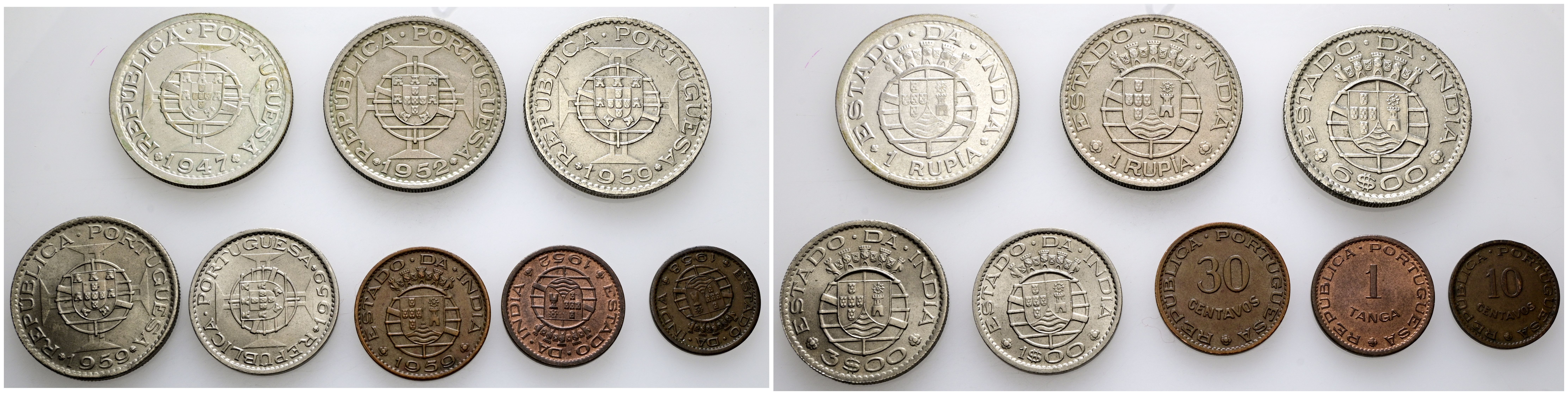 INDIA (Portuguese). Nice set consisting of 8 coins of different modules and dates. Minted between 1947 and 1959. No duplicate pieces. High general level of conservation. TO BE EXAMINED