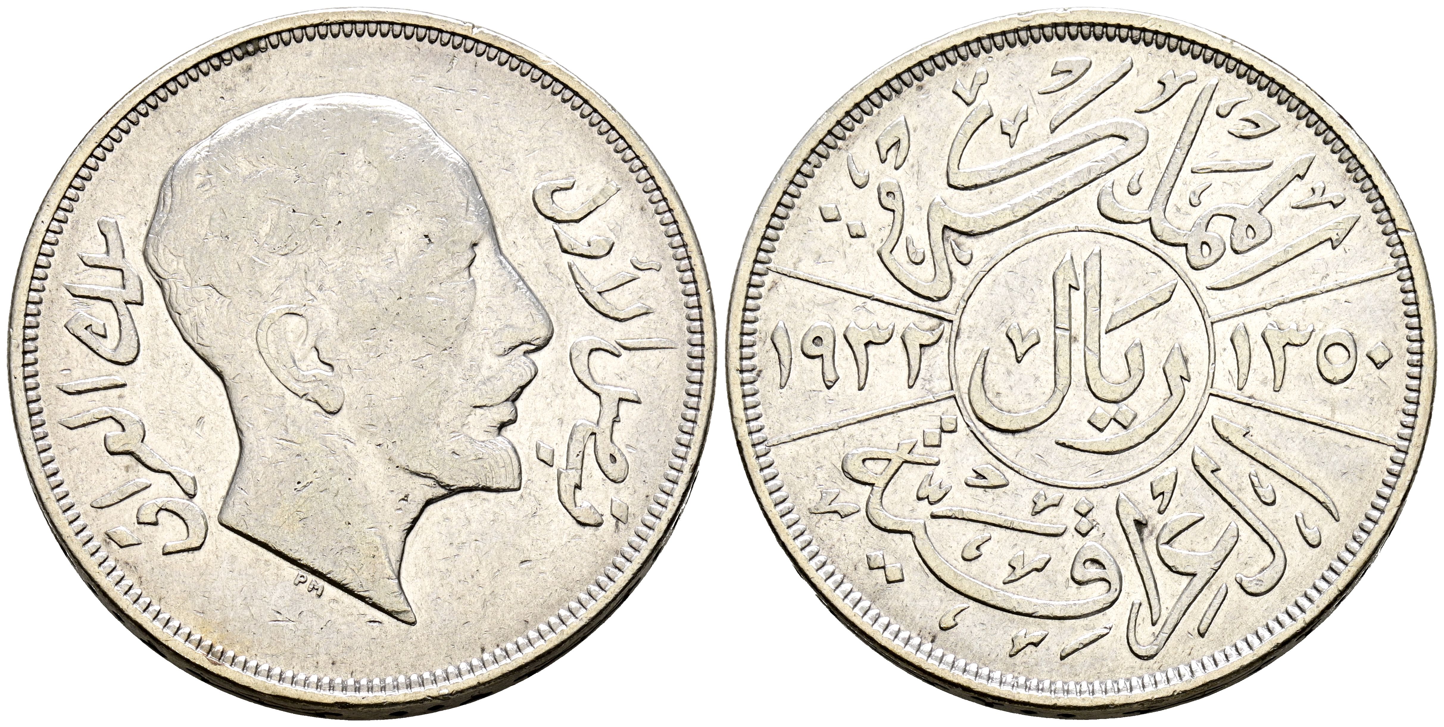IRAQ. 1 Riyal (Ar. 19.92g/34mm). 1932. Faisal I. (Km#101). Very Fine-/Very Fine.