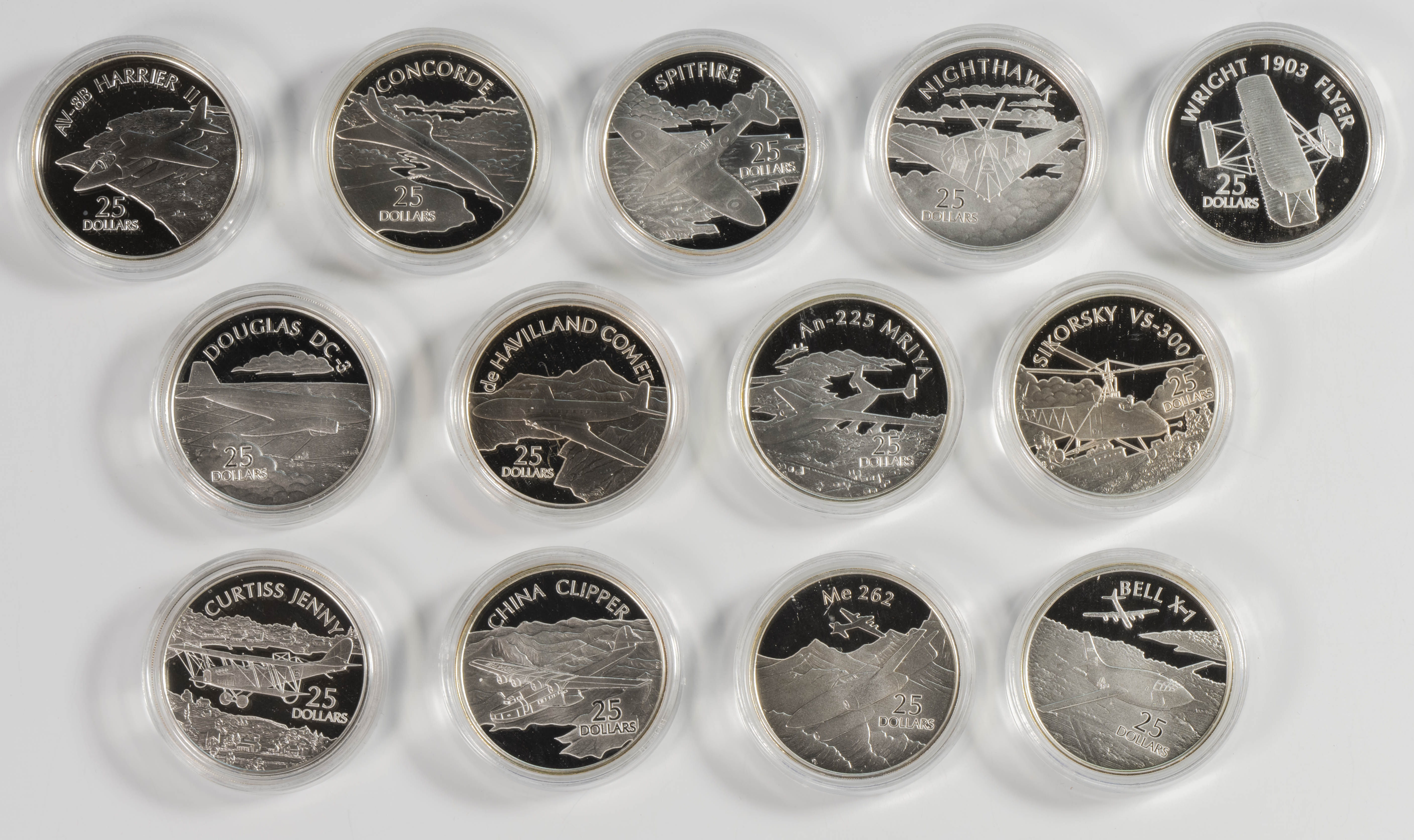 SOLOMON ISLANDS. Planes. Complete set with no repetitions, composed of 13 pieces, valued at 25 Dollars. 2003. Average weight per coin: 31g. PROOF. Includes capsules.
