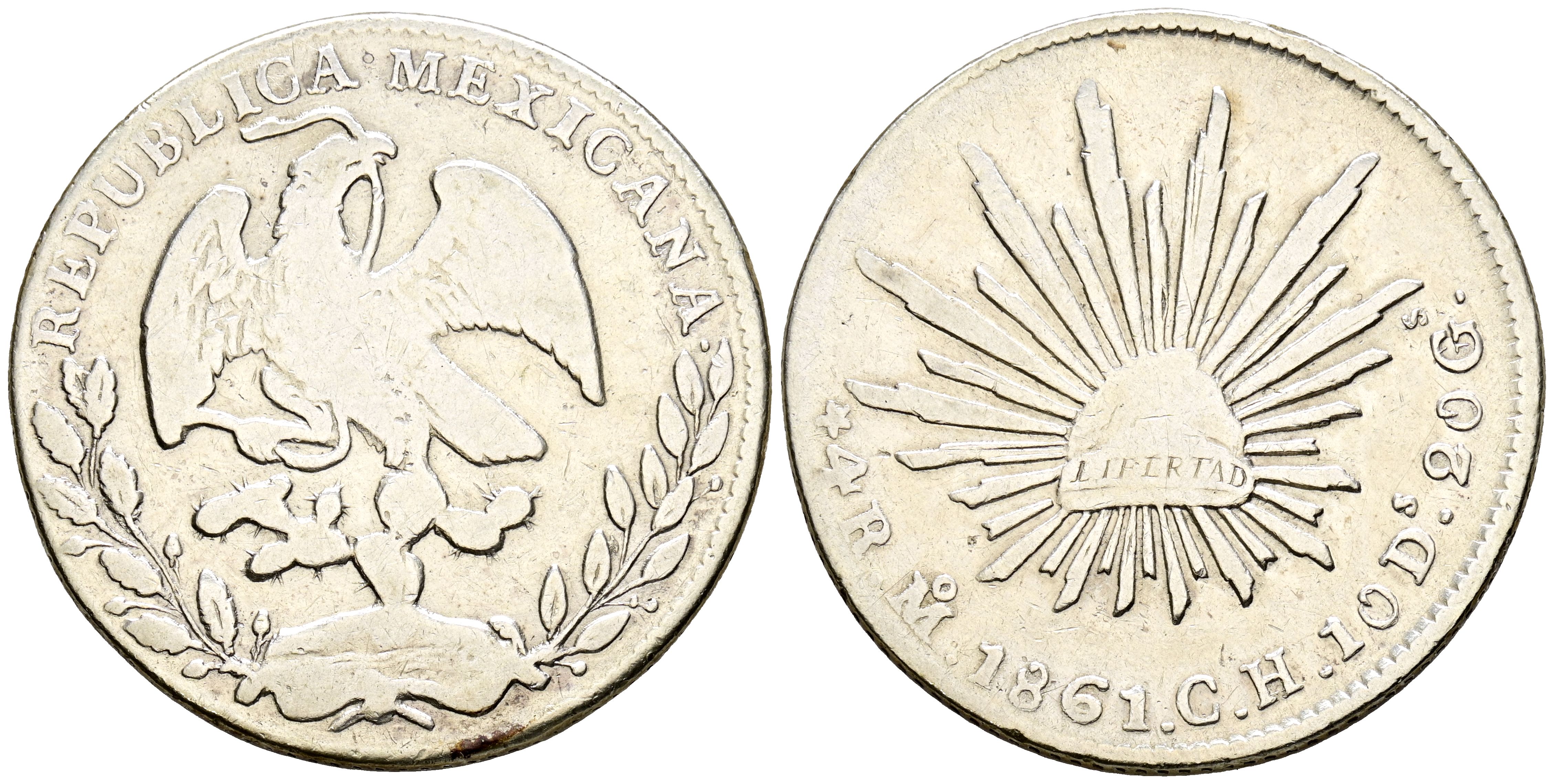 MEXICO. 4 Reales. (Ar. 13.27g/32mm). 1861. Mexico City. (Km#357.6). VF-.