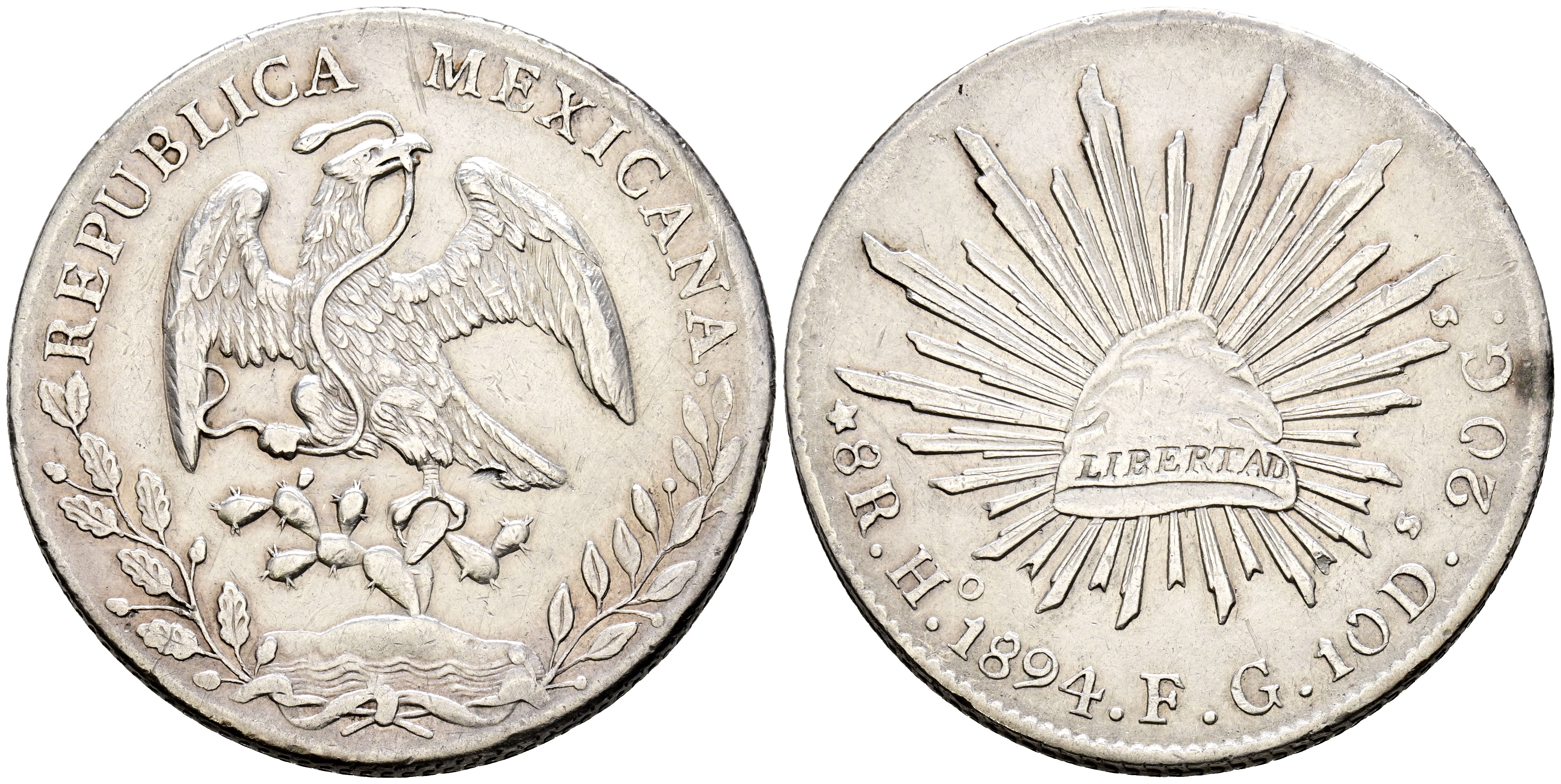 MEXICO. 8 Reales. (Ar. 27.09g/39mm). 1894. Hermosillo FG. (Km#377.9). VF+. Scarce.