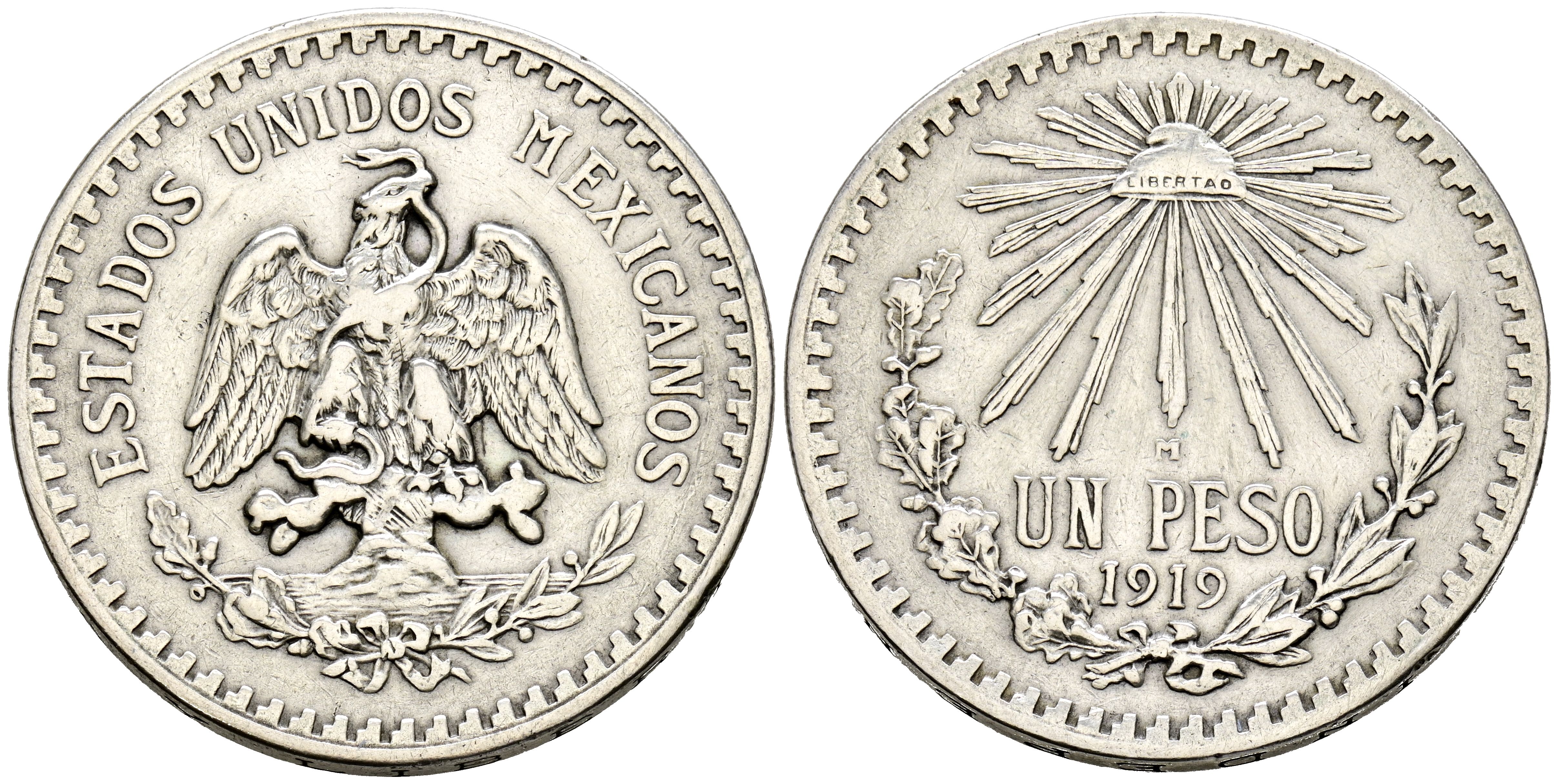 MEXICO. 1 Weight. (Ar. 18.01g/34mm). 1919. (Km#454). Good Very Fine. Scarce.