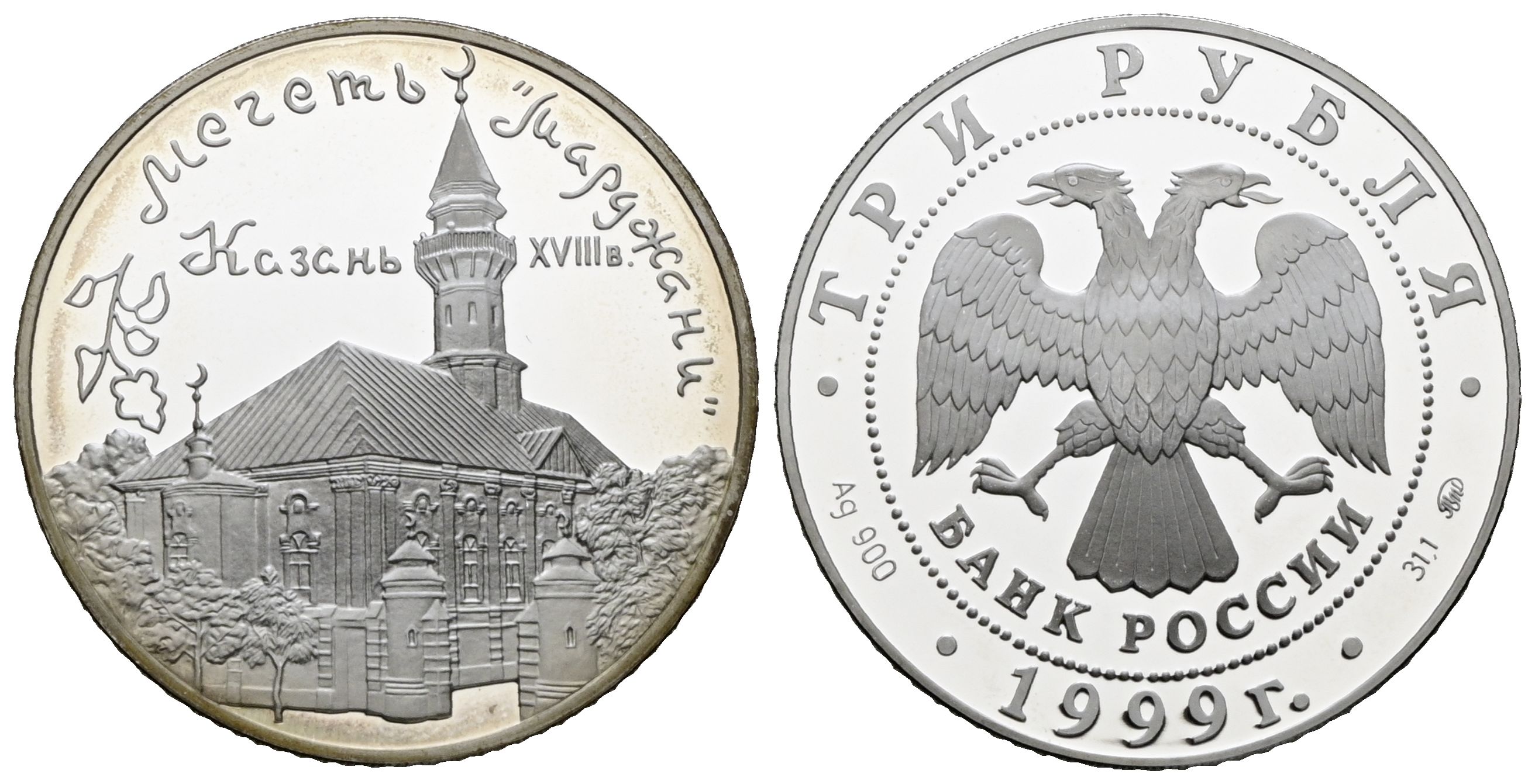 RUSSIA. 3 Rubles. (Ar. 34.84g/38mm). 1999. Moscow. (Km#Y635). PROOF.
