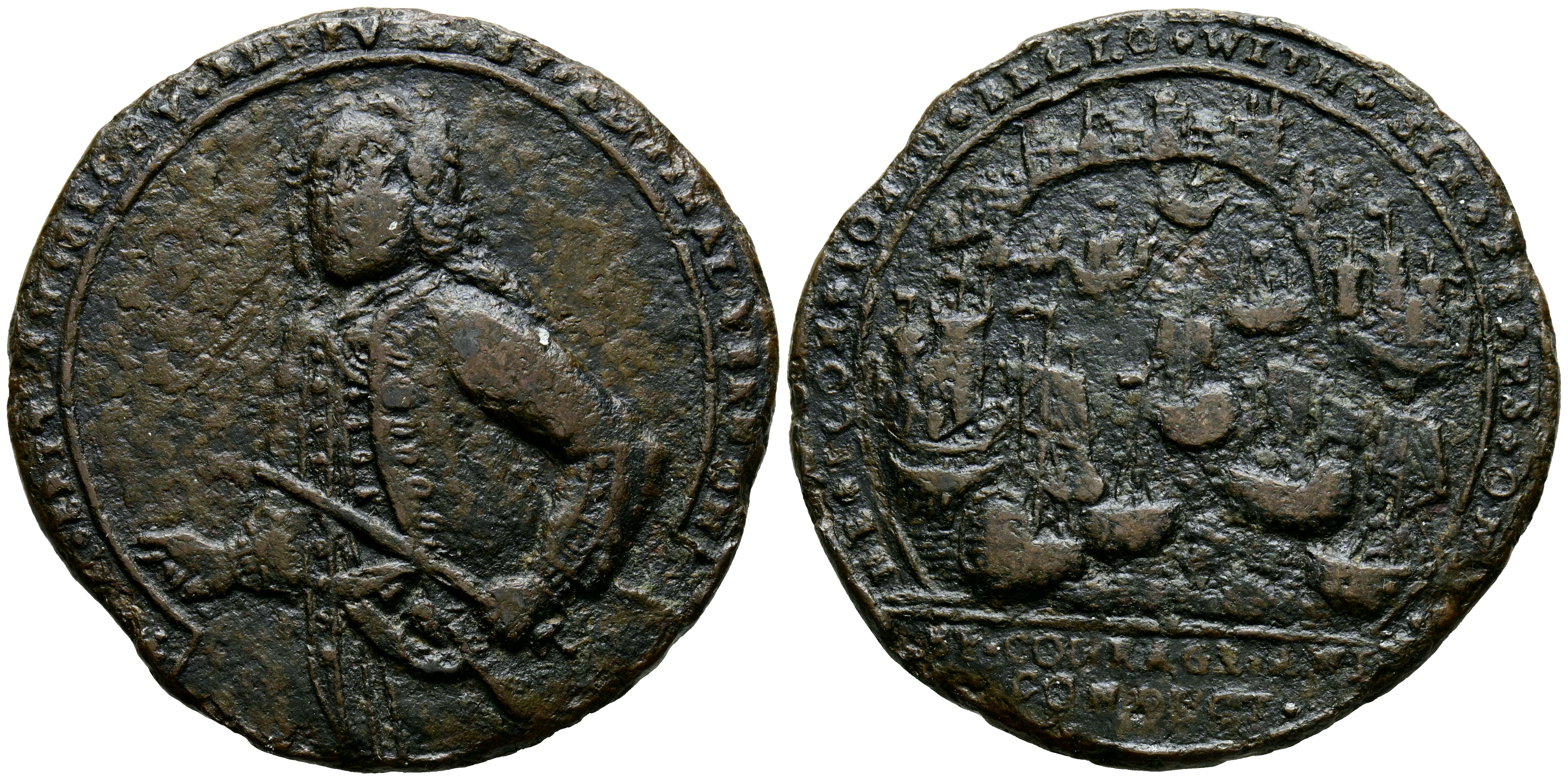 GREAT BRITAIN. Capture of Porto Bello (Ae. 18.15g/37mm). 1739. Admiral Vernon. Fine. Oxidations. Scarce.