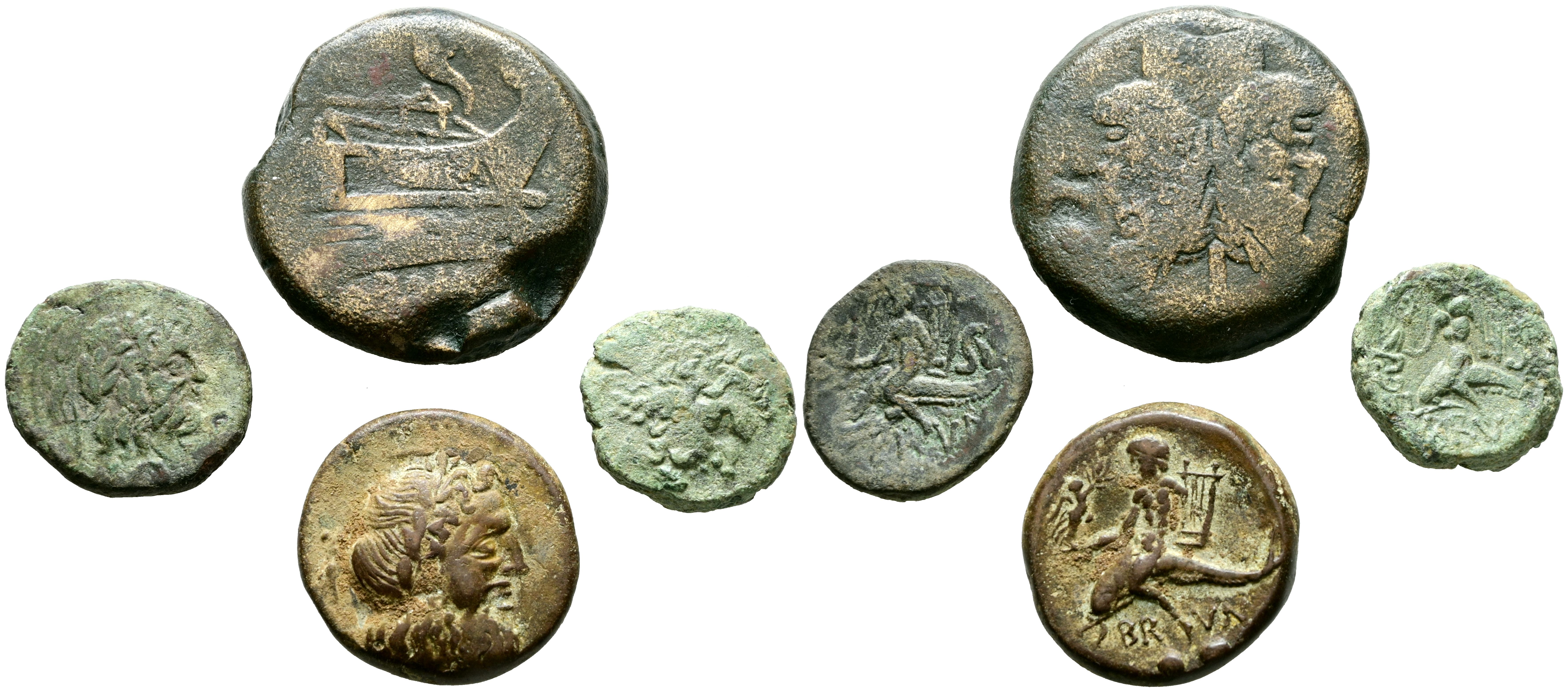 Interesting set of 4 bronzes, of which 3 are Greek from Calabria, Brundisium and 1 Republican As of Janus. TO BE EXAMINED.