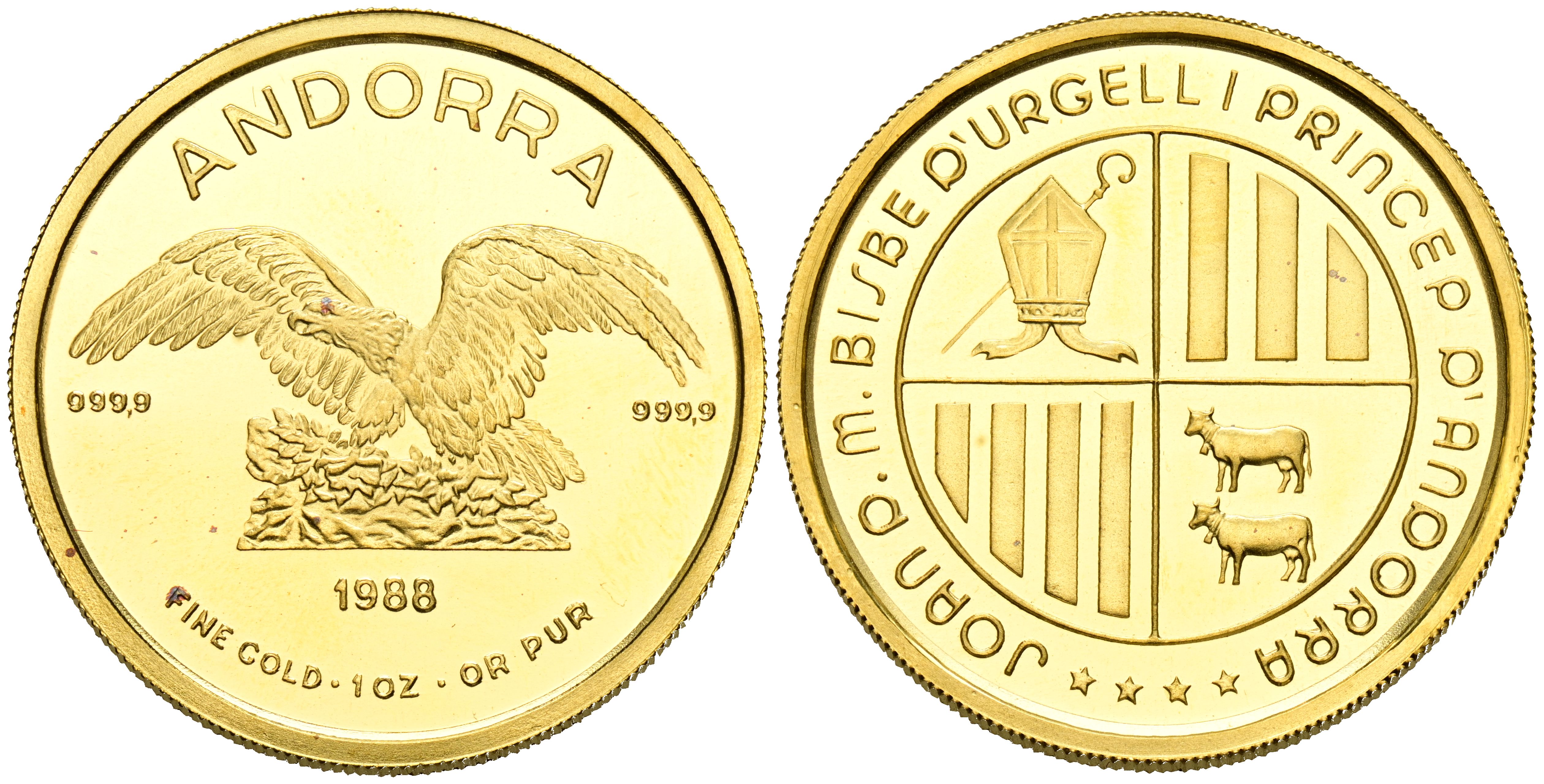 ANDORRA. 1 Ounce. (Au. 31.04g/35mm). 1988. (Km#XMB2). Uncirculated.