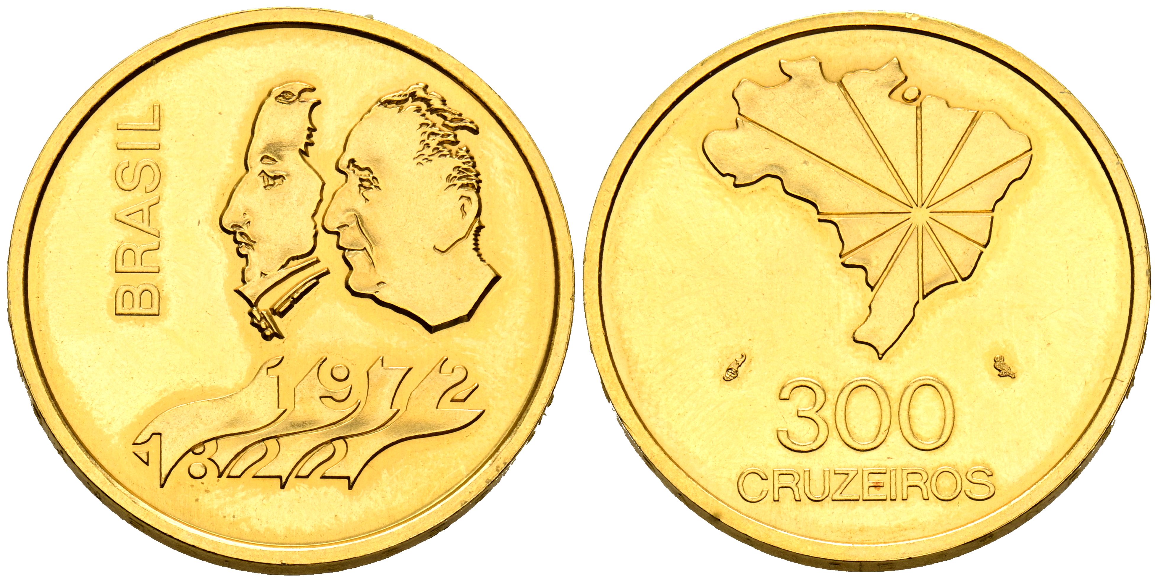 English BRAZIL. 300 Cruzeiros. (Au. 16.71g/27mm). 1982. 150th Anniversary of Independence. (Km#584). Extremely Fine.