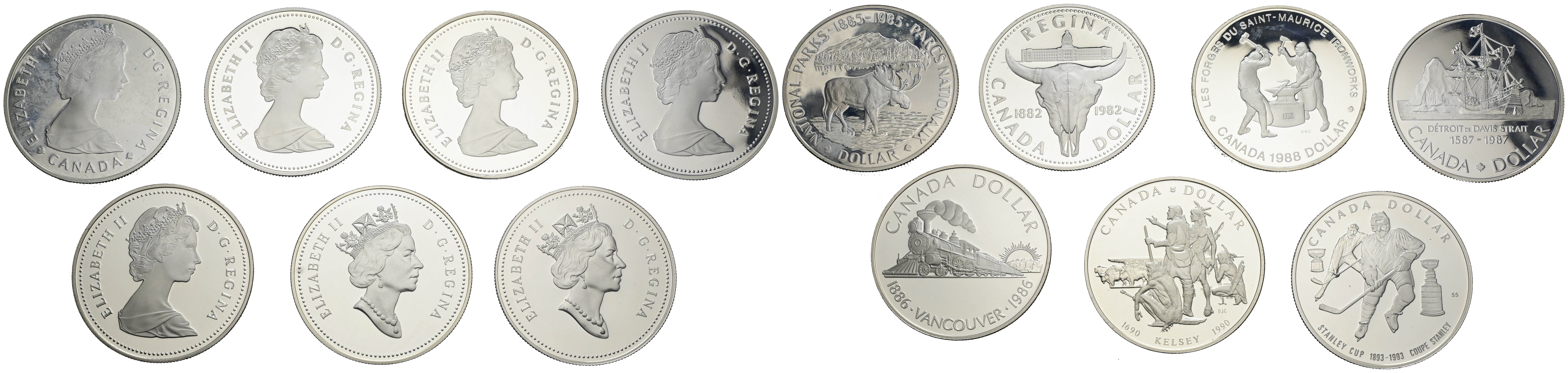 CANADA. Set of seven silver $1 coins minted between 1982 and 1993. All different. PROOF finishes.