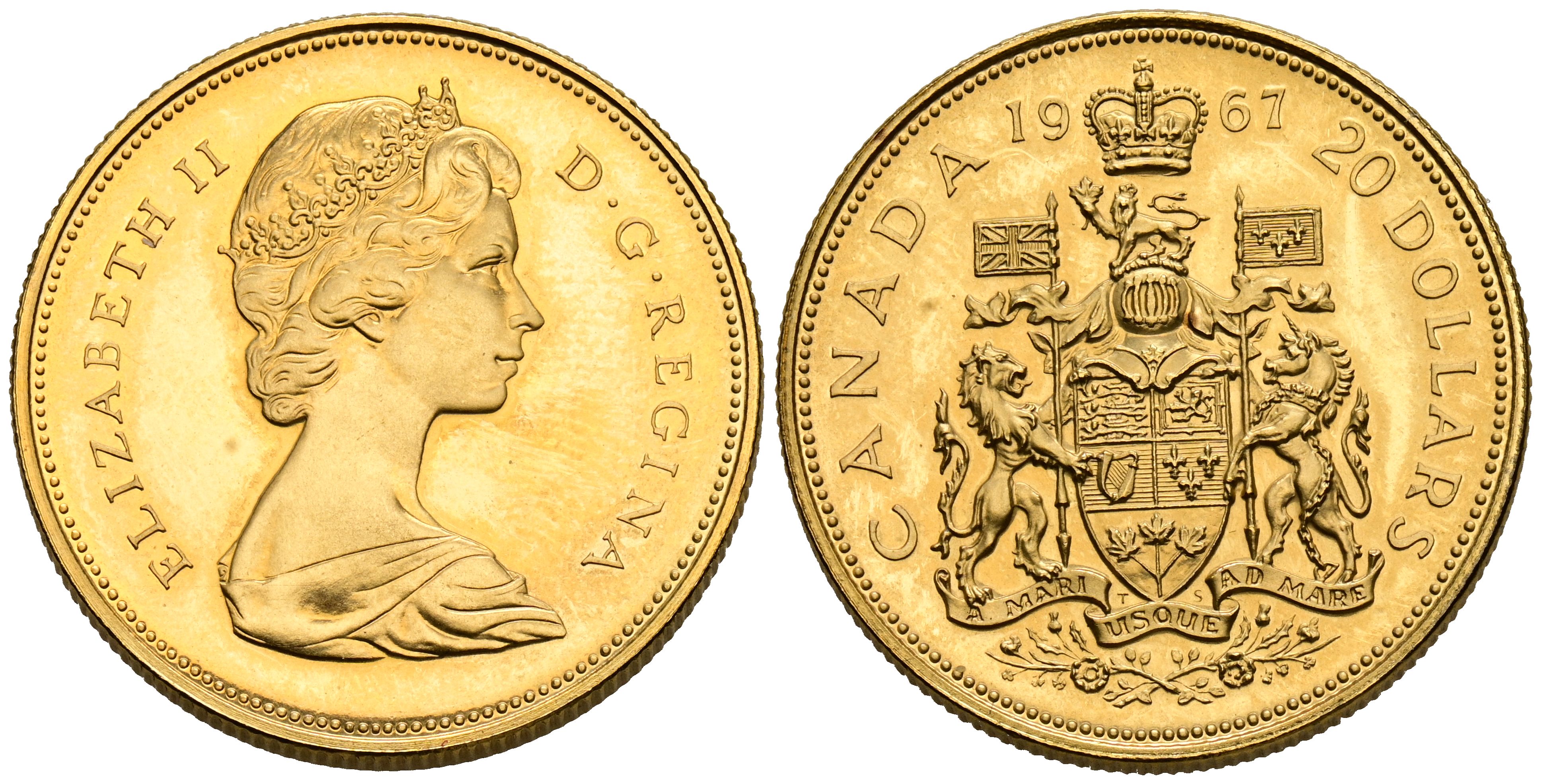 CANADA. 20 Dollars. (Au. 18.30g/27mm). 1967. Centennial of Canadian Confederation. (Km#71). VF+.