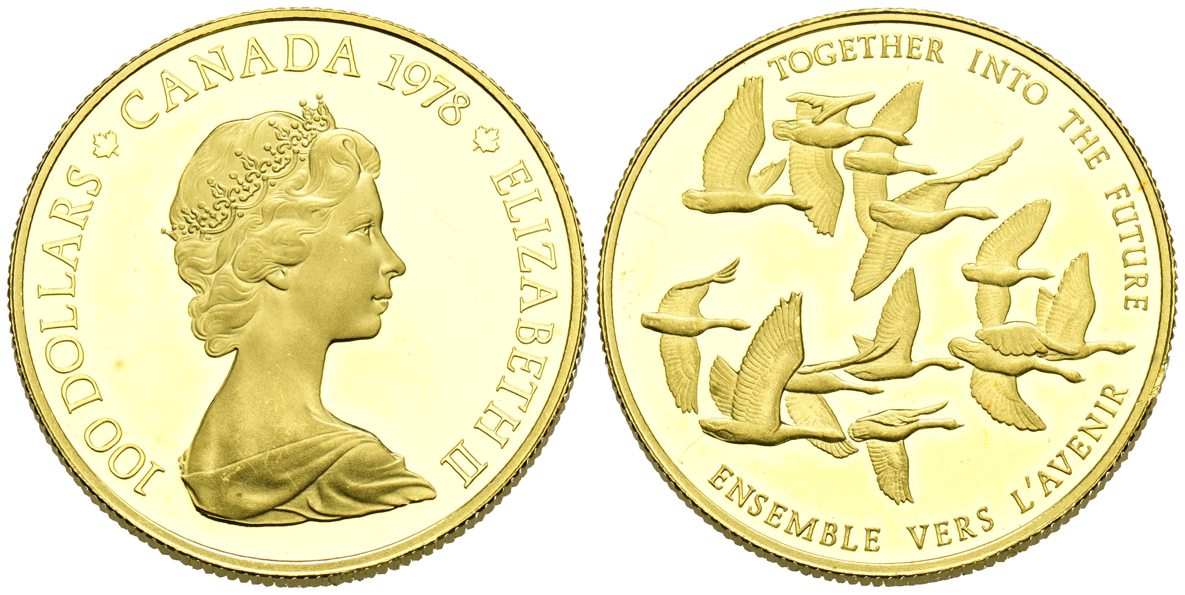 CANADA. 100 Dollars. (Au. 16.94g/27mm). 1978. Geese. (Km#122). PROOF.