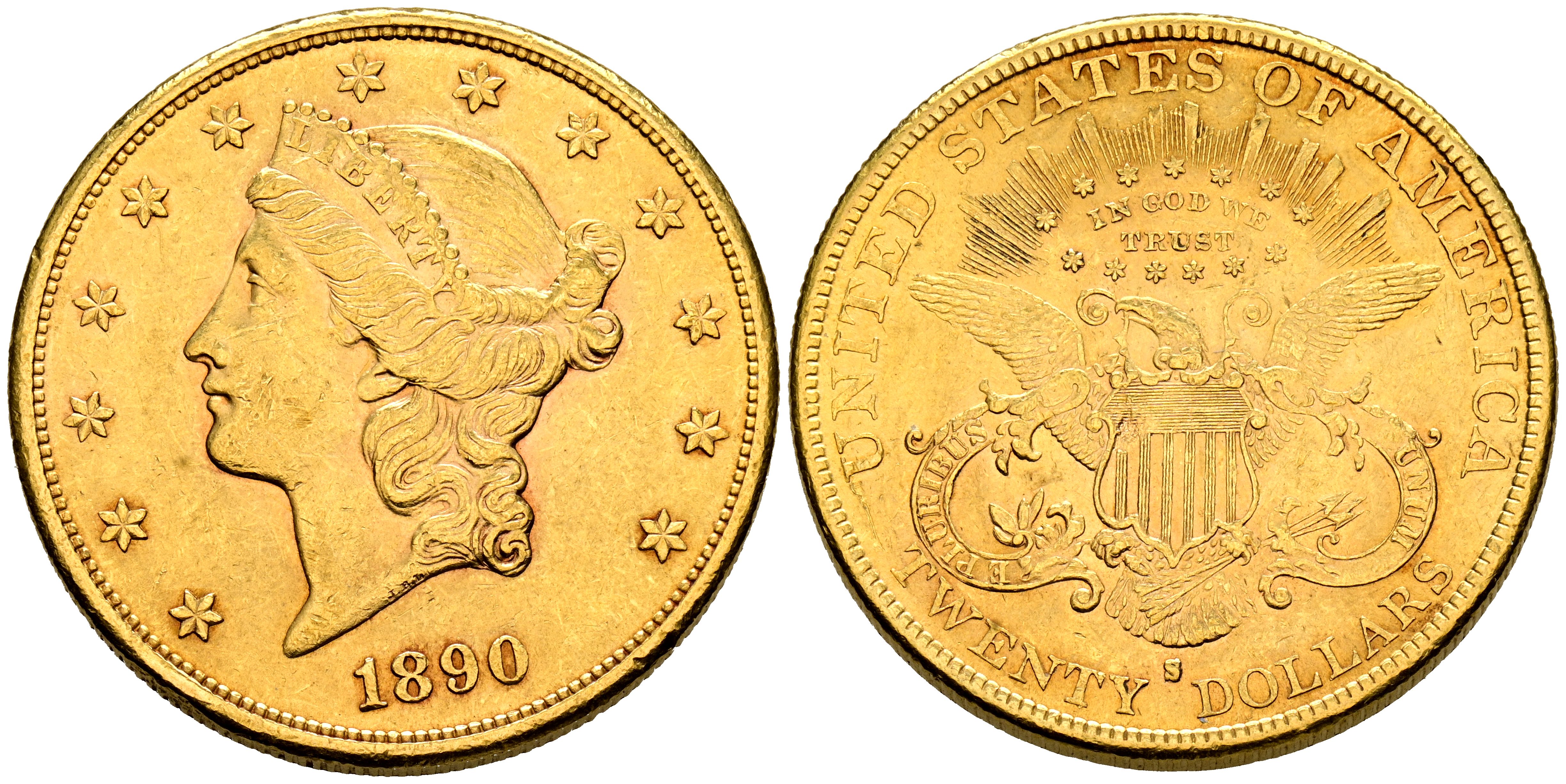 USA. 20 Dollars. (Au. 33.44g/34mm). 1890. San Francisco S. (Km#74.3). Good Very Fine.