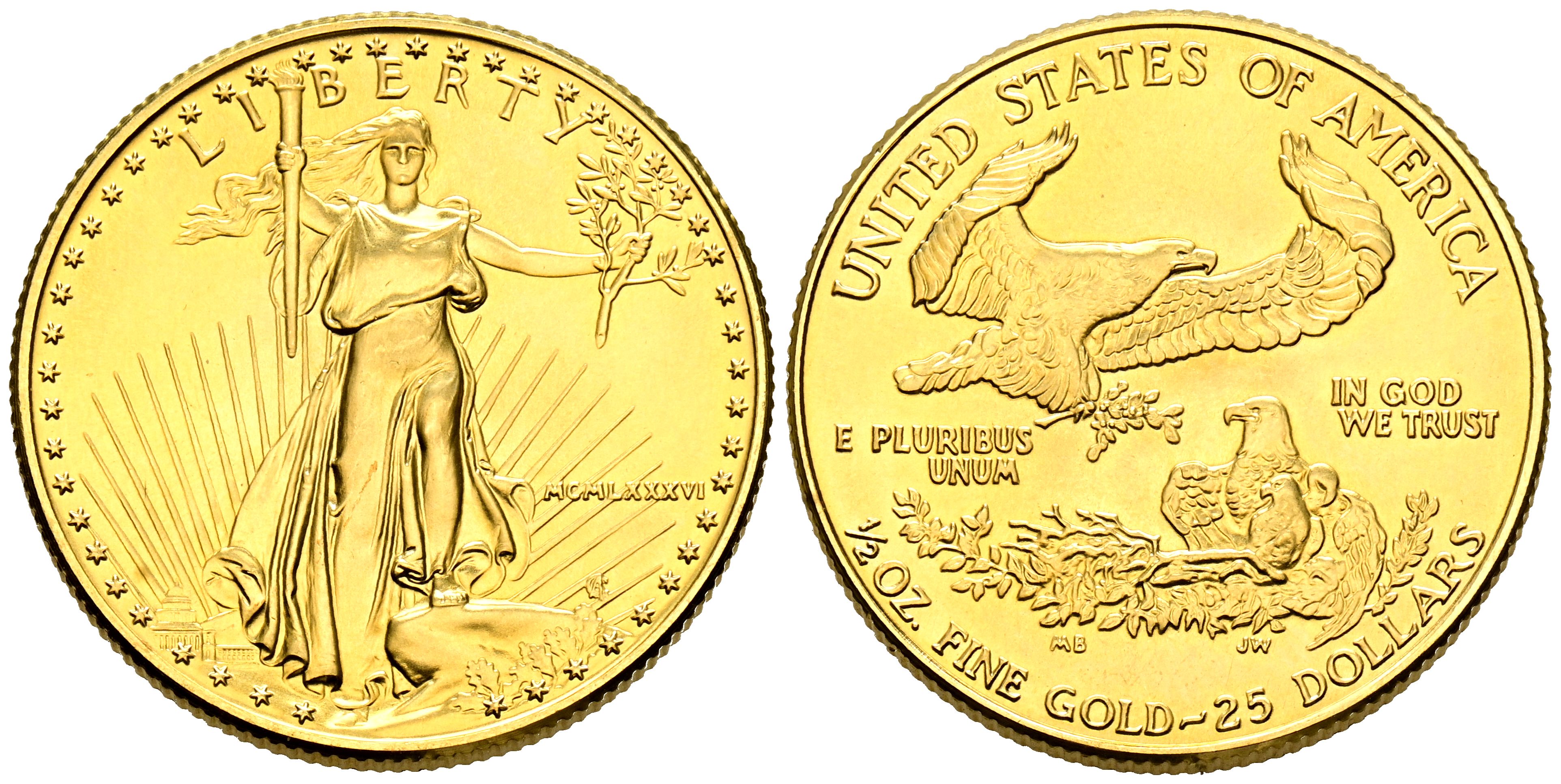 USA. 25 Dollars. (Au. 16.95g/27mm). 1986. (Km#218). Uncirculated.