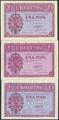Set of four consecutive 1-peseta banknotes issued on October 12, 1937, in series B, E, and F (the last series issued), respectively. (Edifil 2023: 425a, 425b). Original printing. Unused.