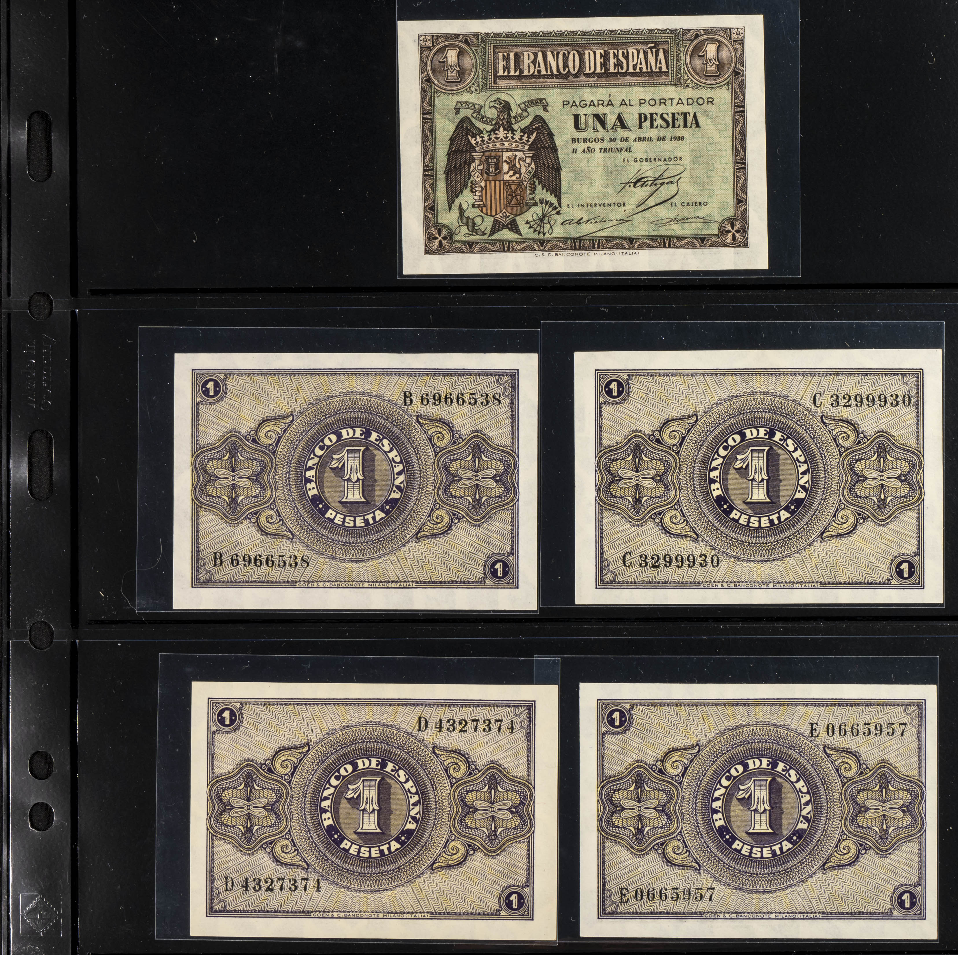 Set of 12 1 Peseta banknotes issued on April 30, 1938, in series A, B, C, D, E, F, G, H, I, L, M, and N (last series issued). (Edifil 2023: 428, 428a, 428b). Very rare complete set, original priming. Uncirculated/Uncirculated-.