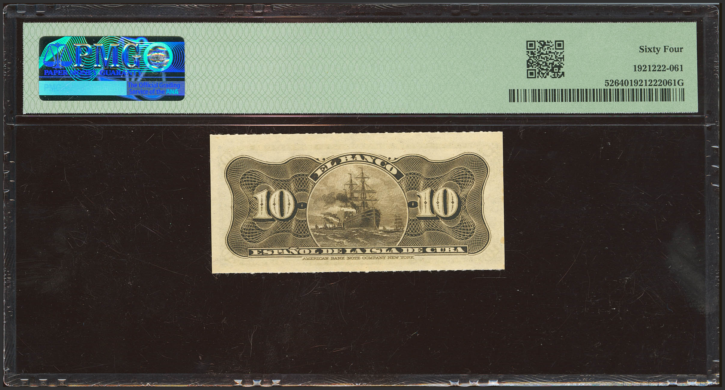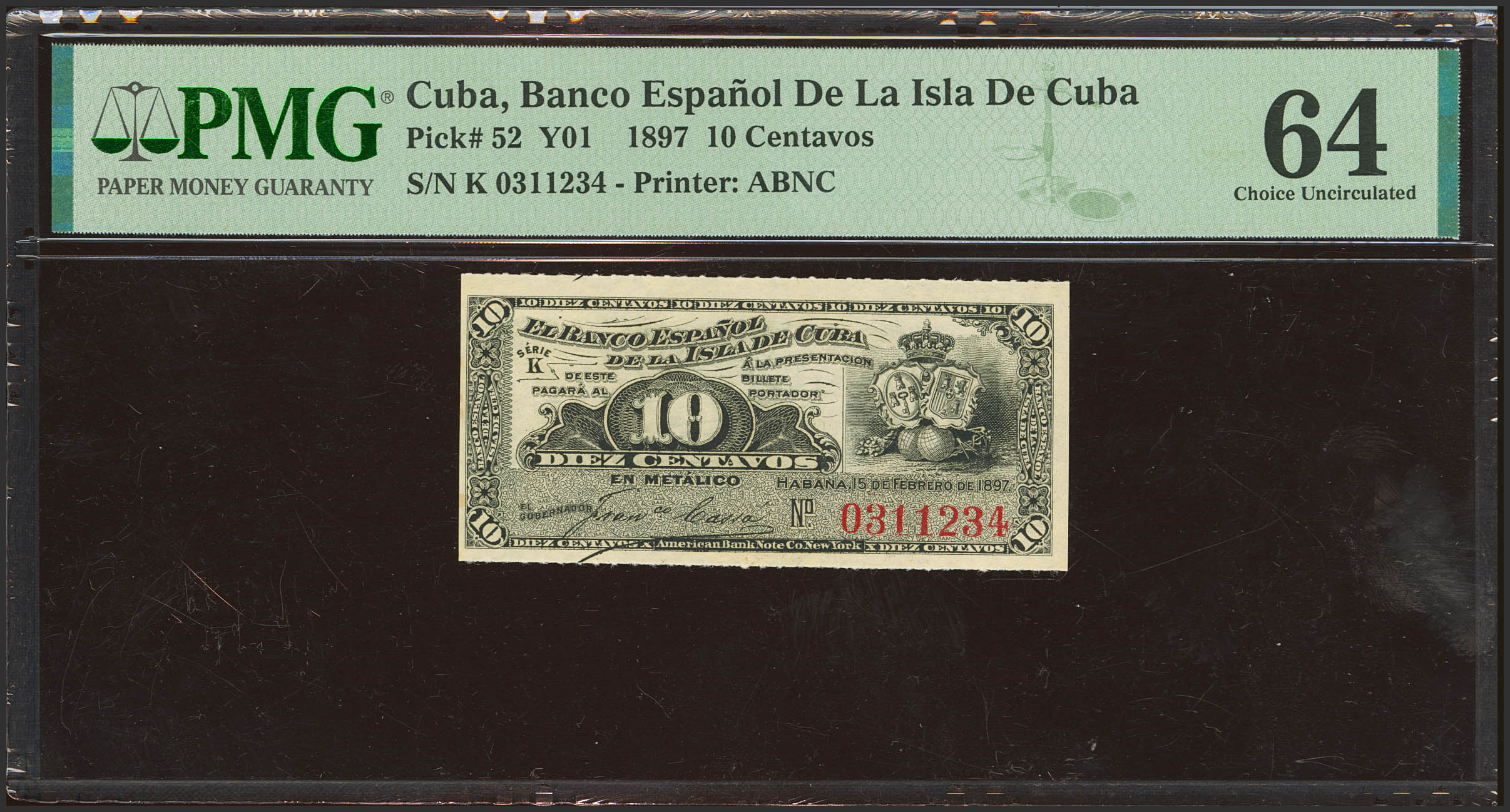 SPANISH BANK OF THE ISLAND OF CUBA. 10 Cents. February 15, 1897. Series K. (Edifil 2023: 84, Pick: 52). Original size. Uncirculated. Encapsulated PMG64.