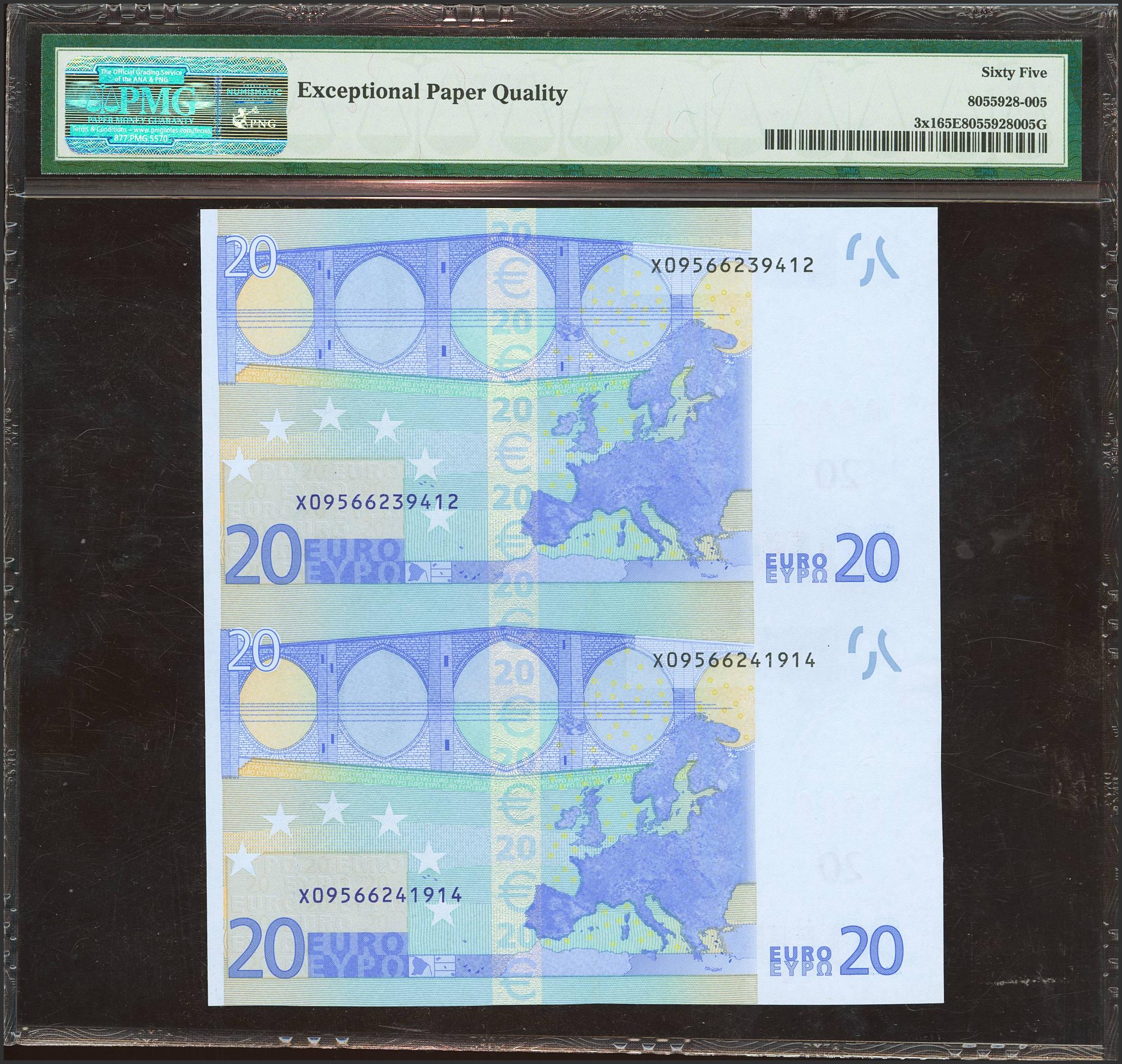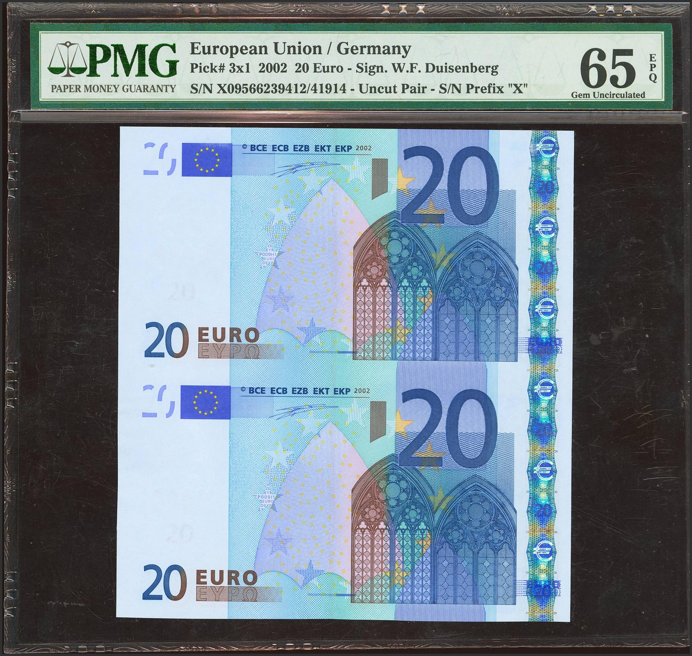GERMANY. 20 Euros. 2002. Signature Duisenber. Serial X (Germany). Unguillotined couple. (Pick: 3x1). PMG65EPQ.