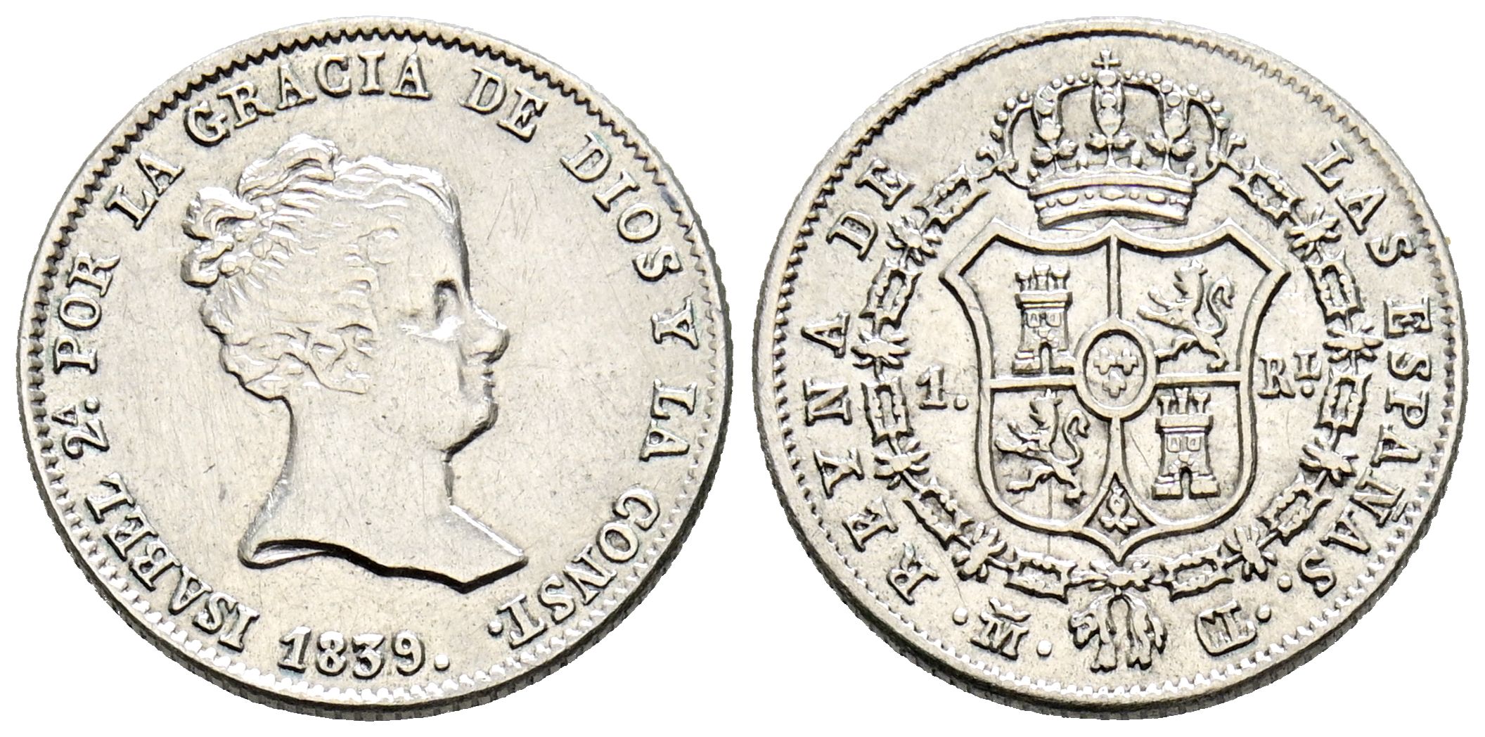 ELIZABETH II (1833-1868). 1 Royal. (Ar. 1.47g/15mm). 1839. Madrid CL. (Cal-2019-293). Extremely Fine-. Scarce.