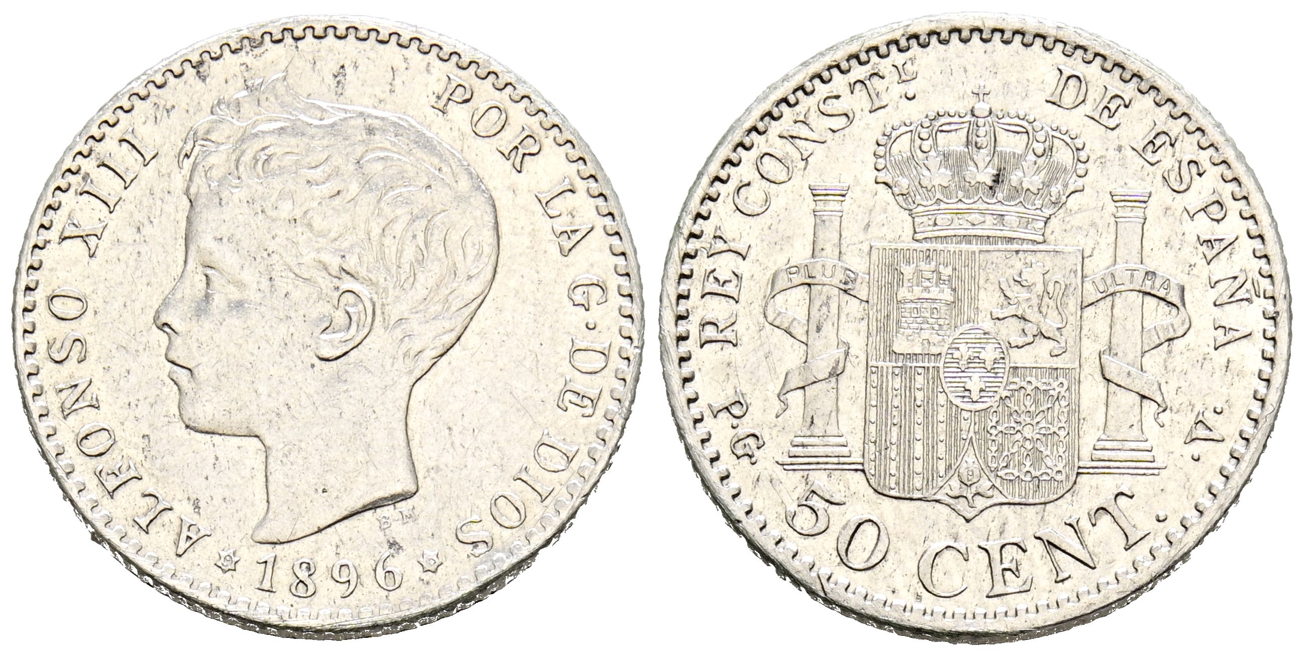 ALFONSO XIII (1885-1931). 50 Cents (Ar. 2.53g/18mm). 1896 *9-6. Madrid PGV. (Cal-2019-44). Extremely Fine-.