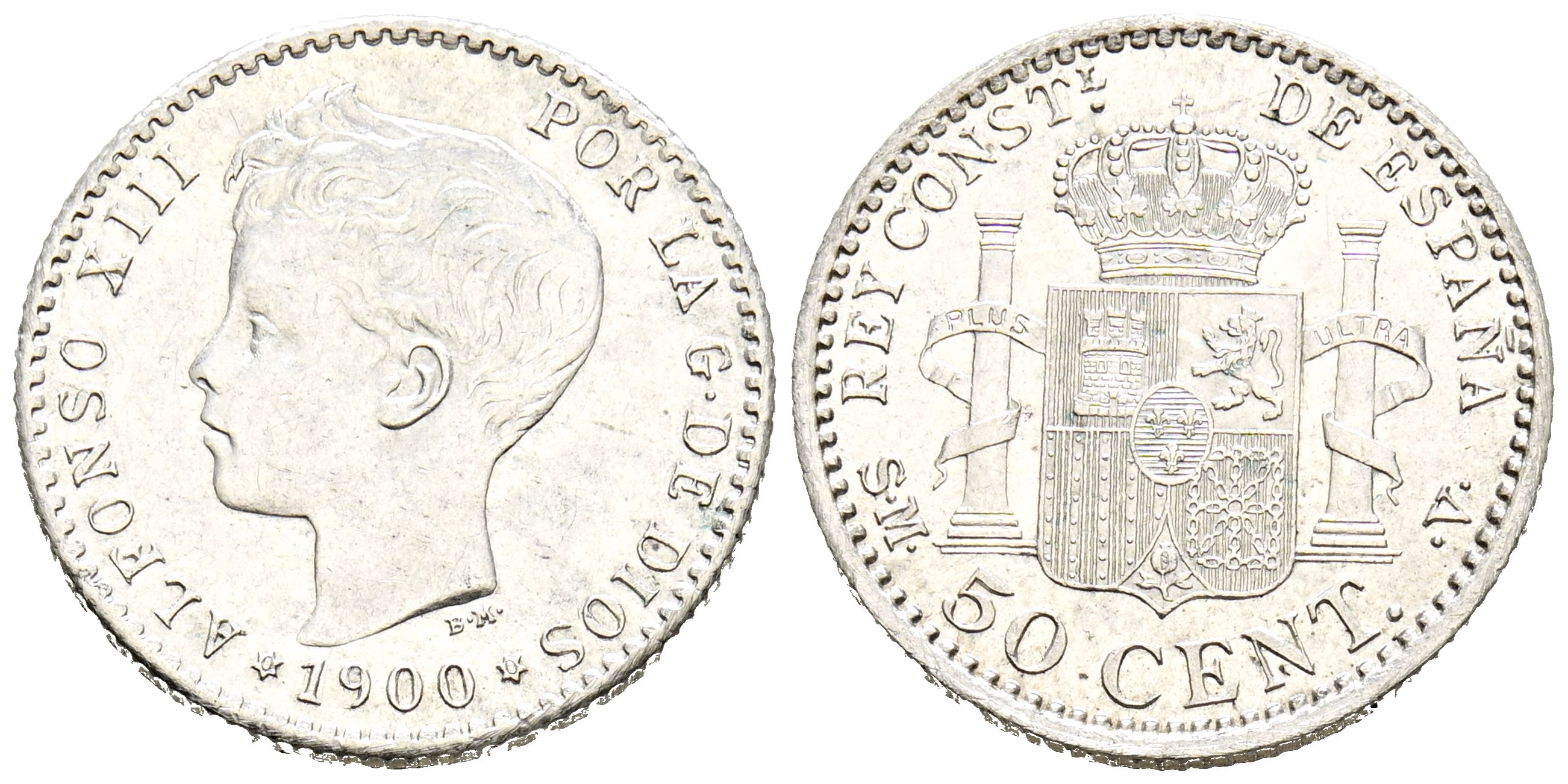 Alfonso XIII (1885-1931). 50 Cents. (Ar. 2.50g/18mm). 1900 *0-0. Madrid SMV. (Cal. 2019-45). Extremely Fine/Good Extremely Fine. Original luster.