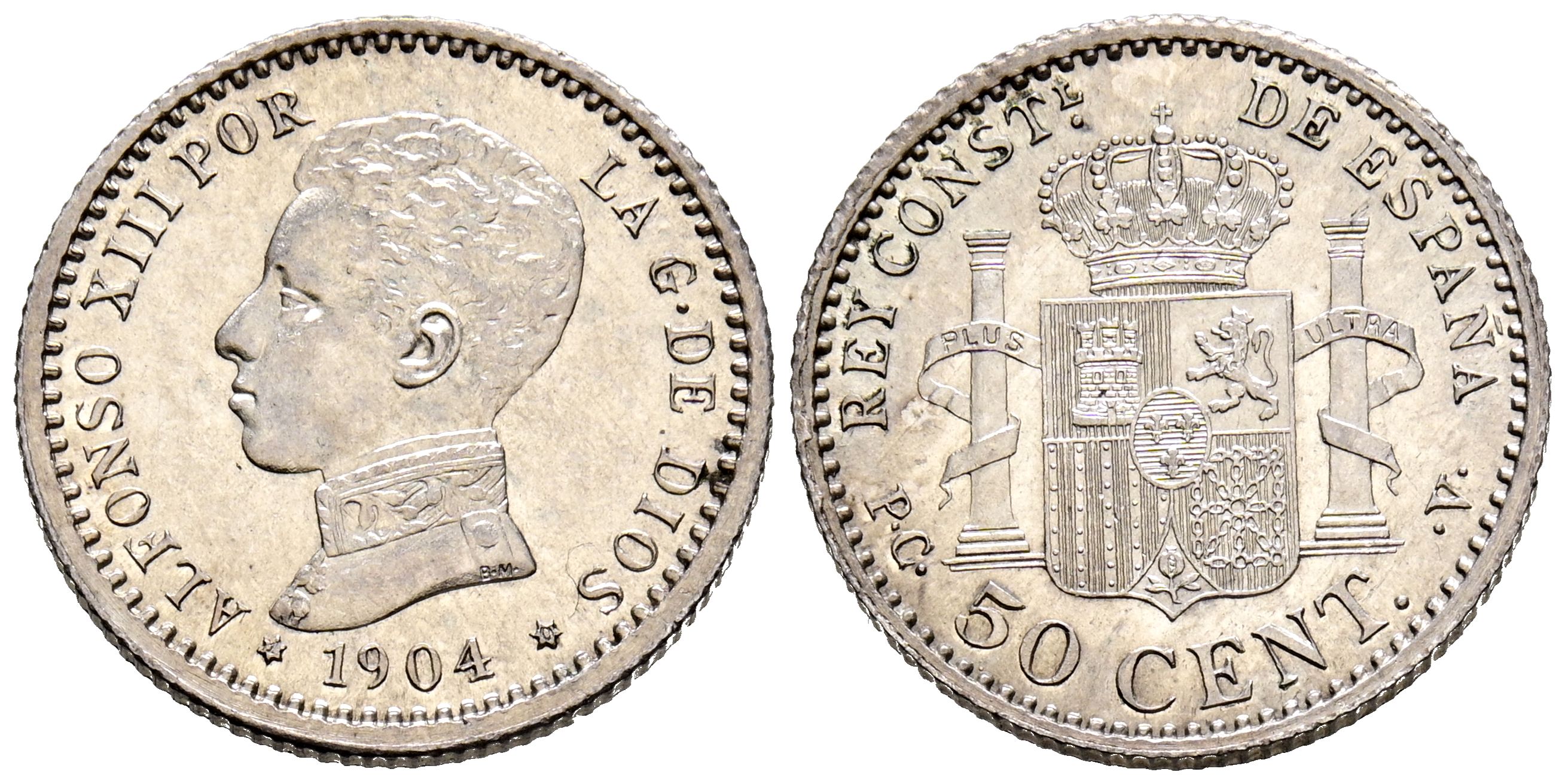 Alfonso XIII (1885-1931). 50 Cents. (Ar. 2.46g/18mm). 1904 *1-0. Madrid SMV. (Cal. 2019-47). Uncirculated-. Original luster.