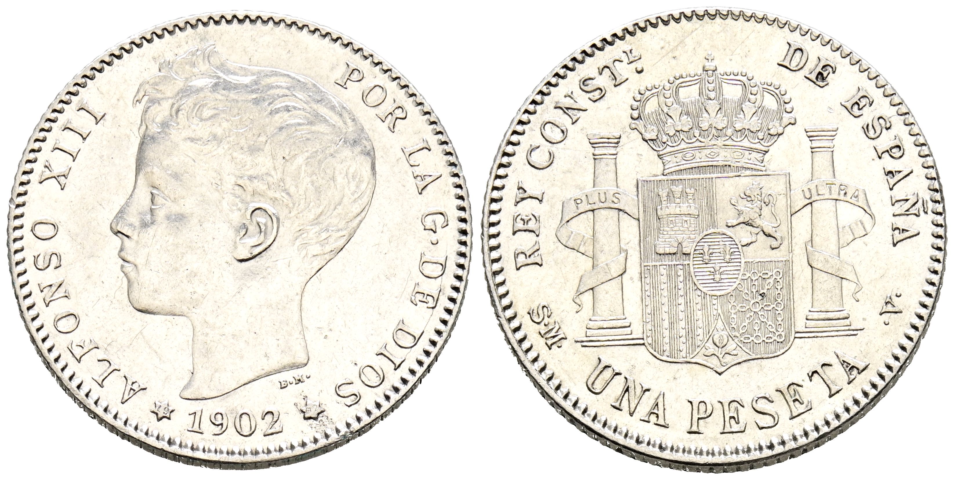 ALFONSO XIII (1885-1931). 1 Peseta. (Ar. 5.06g/23mm). 1902 *19-02. Madrid SMV. (Cal-2019-64). Good Very Fine. Scarce.