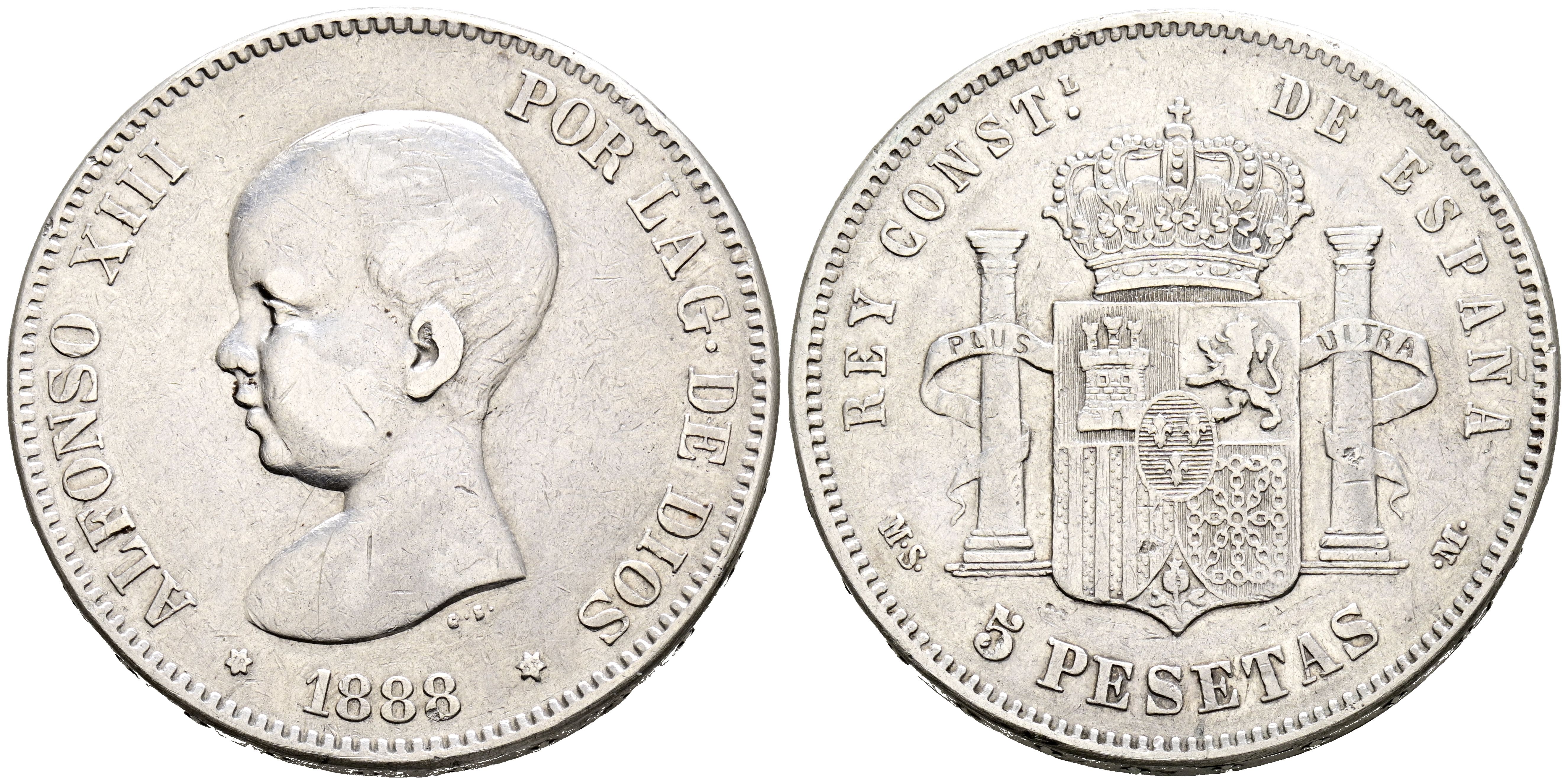 ALFONSO XIII (1885-1931). 5 Pesetas (Ar. 24.67g/37mm). 1888. Madrid MSM. (Cal-2019-89). Very Fine. Strange.