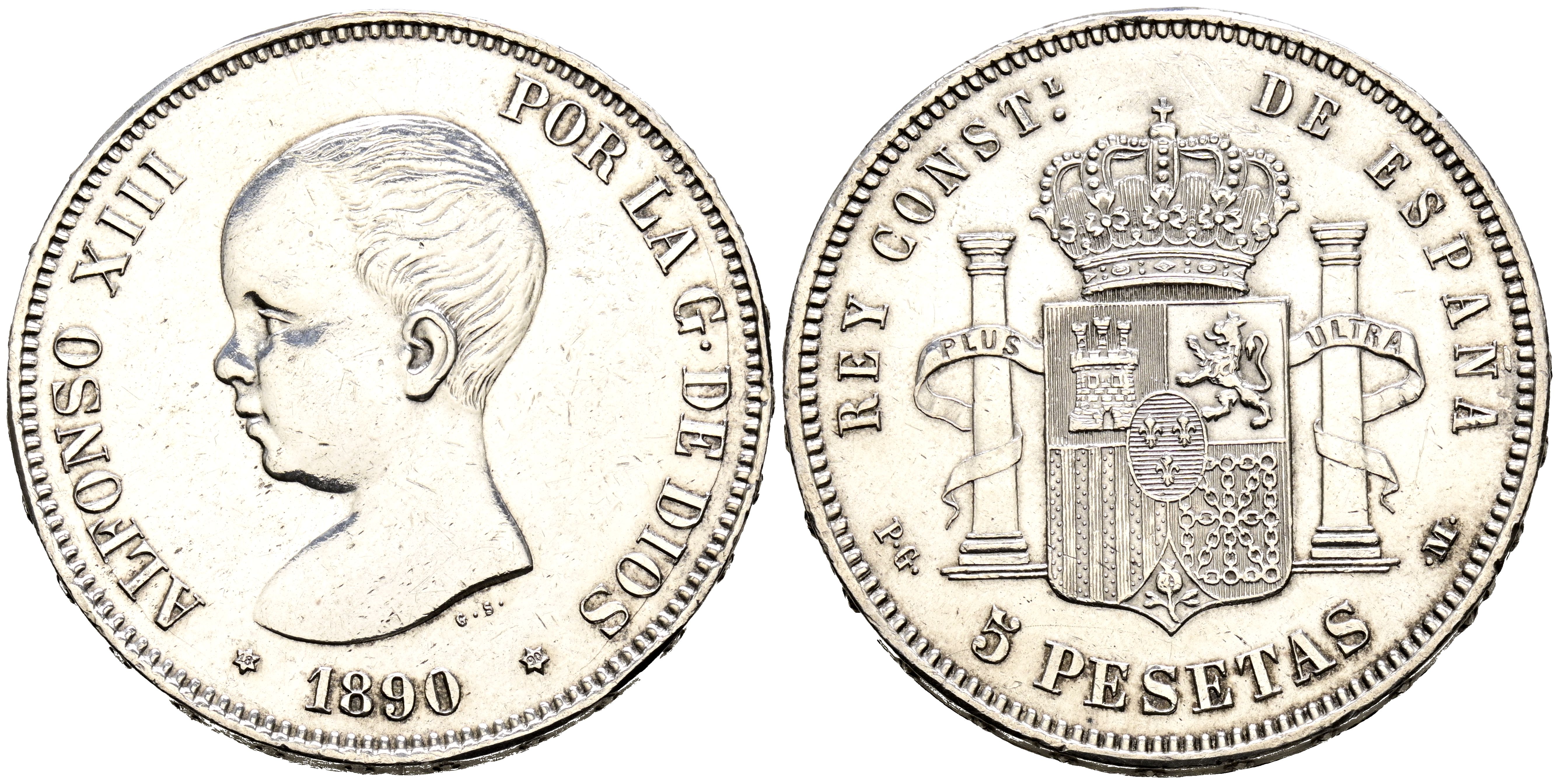 ALFONSO XIII (1885-1931). 5 Pesetas. (Ar. 24.97g/37mm). 1890 *18-90 Madrid PGM. (Cal-2019-97). Good Very Fine. Polished.