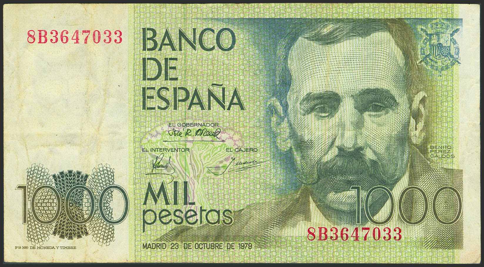 English 1000 Pesetas. October 23, 1979. Special series 8B. (Edifil 2023: 477c). Very rare series. VF-.