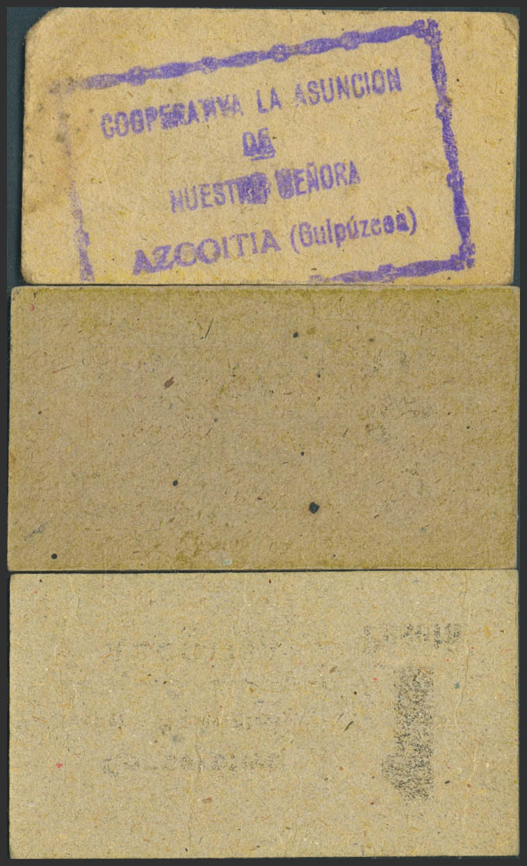 English AZCOITIA. 1 Peseta, 2 Pesetas and 100 Pesetas. (1937ca). Extremely Fine/Uncirculated--.