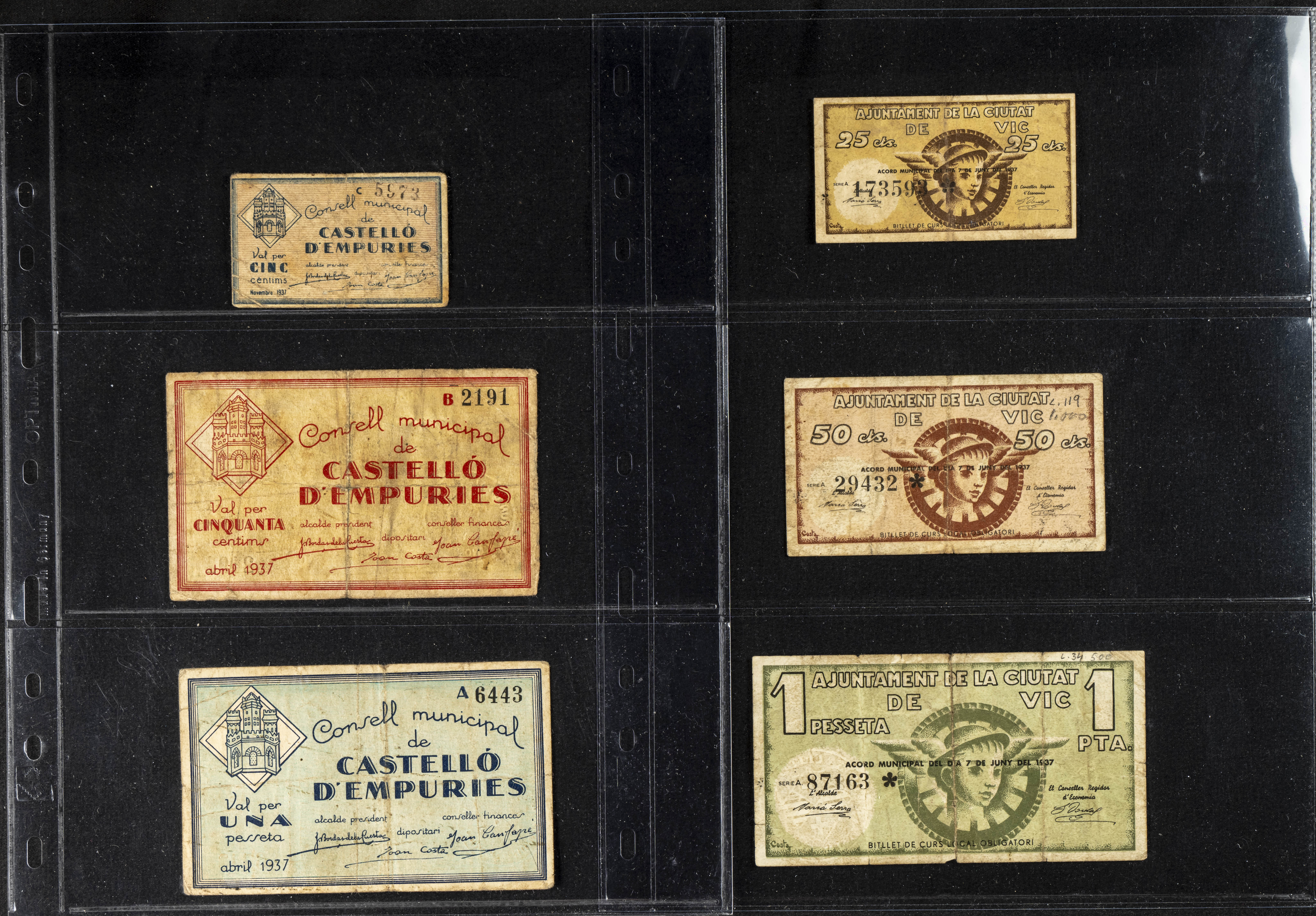 Collection of over 100 banknotes from the Spanish Civil War, all Catalan, in various qualities (some unnumbered, surplus from issuance). TO BE EXAMINED. Once again, we thank the entire La Taberna community for their selfless collaboration in helping us with the technical aspects of classifying the counterfeit or fantasy banknotes in this lot. We ask for your patience; as soon as this lot has been reviewed and the consignor notified, it will be put back on sale, with the problematic banknotes removed. We apologize to anyone who may have been offended by our actions. In keeping with La Taberna's commitment to transparency, we will modify the lot's composition, exercising our right as outlined in point 9 of our terms and conditions of sale. We are strong advocates for all online platforms, which we believe are sources of knowledge and act as safeguards for the sector.